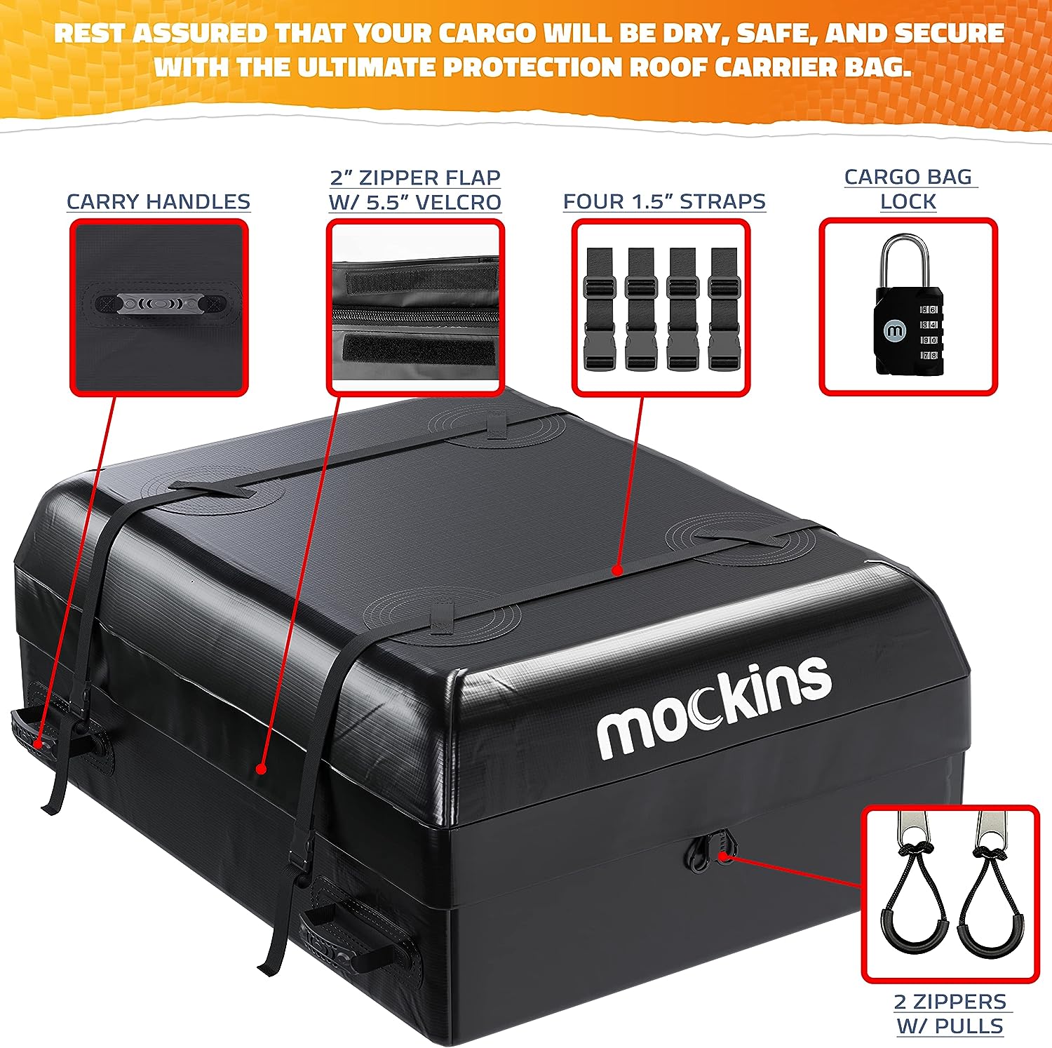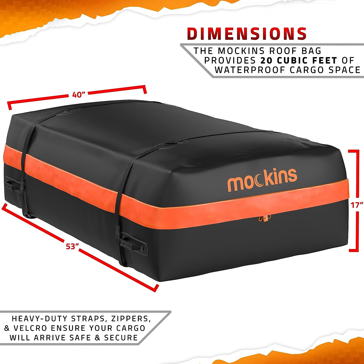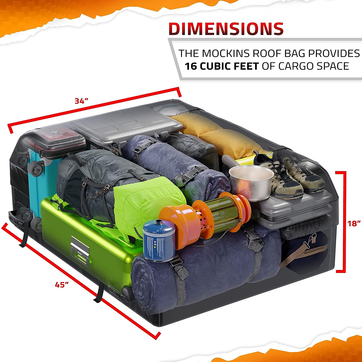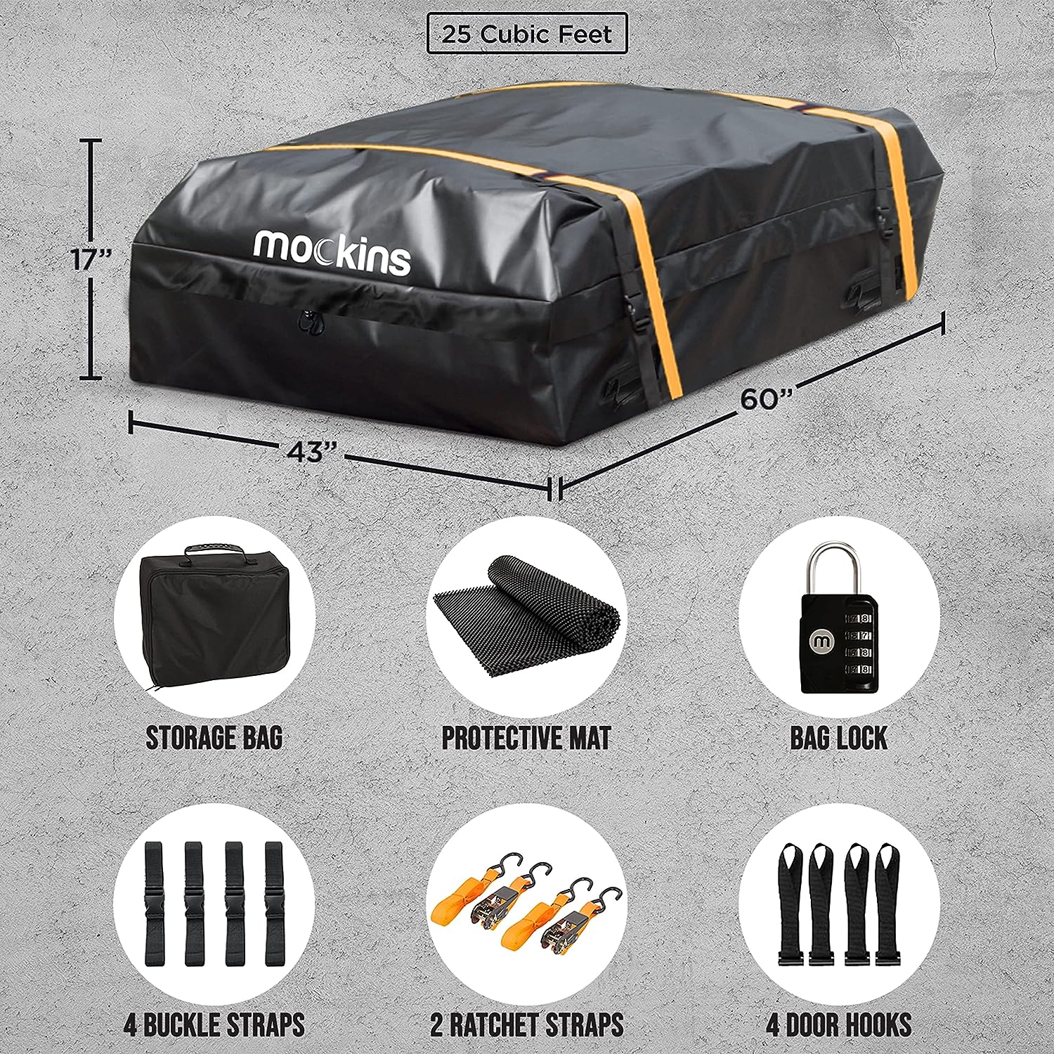 Mockins 25 Cubic Feet Rooftop Cargo Bag Set 60"x43"x17" Car Roof Storage Bag | Roof Bag Waterproof Carrier for Vehicles with/Without Rack | Roof Rack Storage Roof Cargo Bag | Car Top Carrier Roofbag