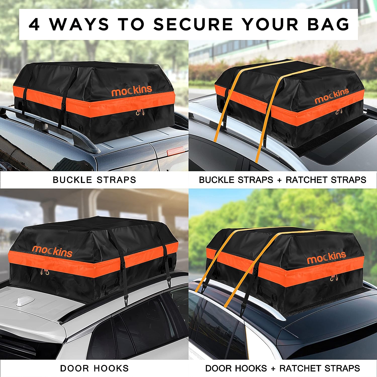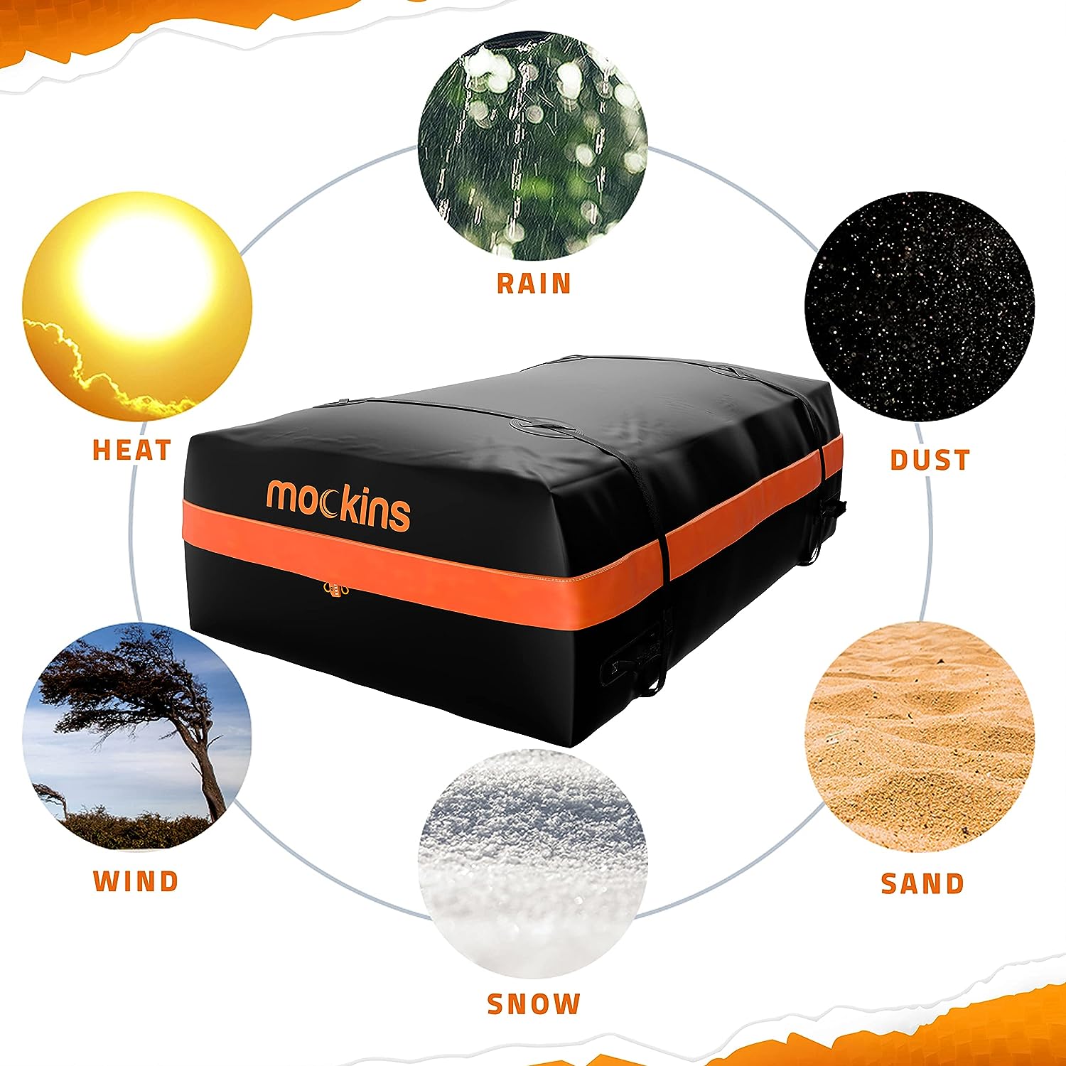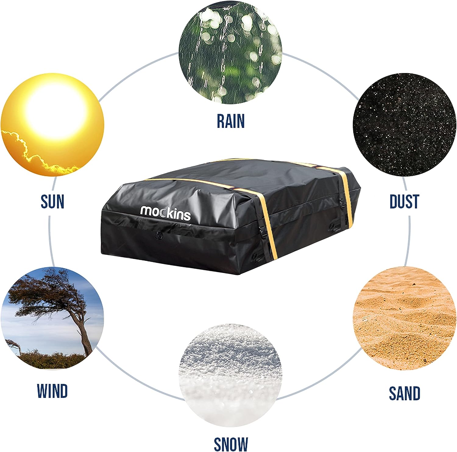 Mockins 25 Cubic Feet Rooftop Cargo Bag Set 60"x43"x17" Car Roof Storage Bag | Roof Bag Waterproof Carrier for Vehicles with/Without Rack | Roof Rack Storage Roof Cargo Bag | Car Top Carrier Roofbag