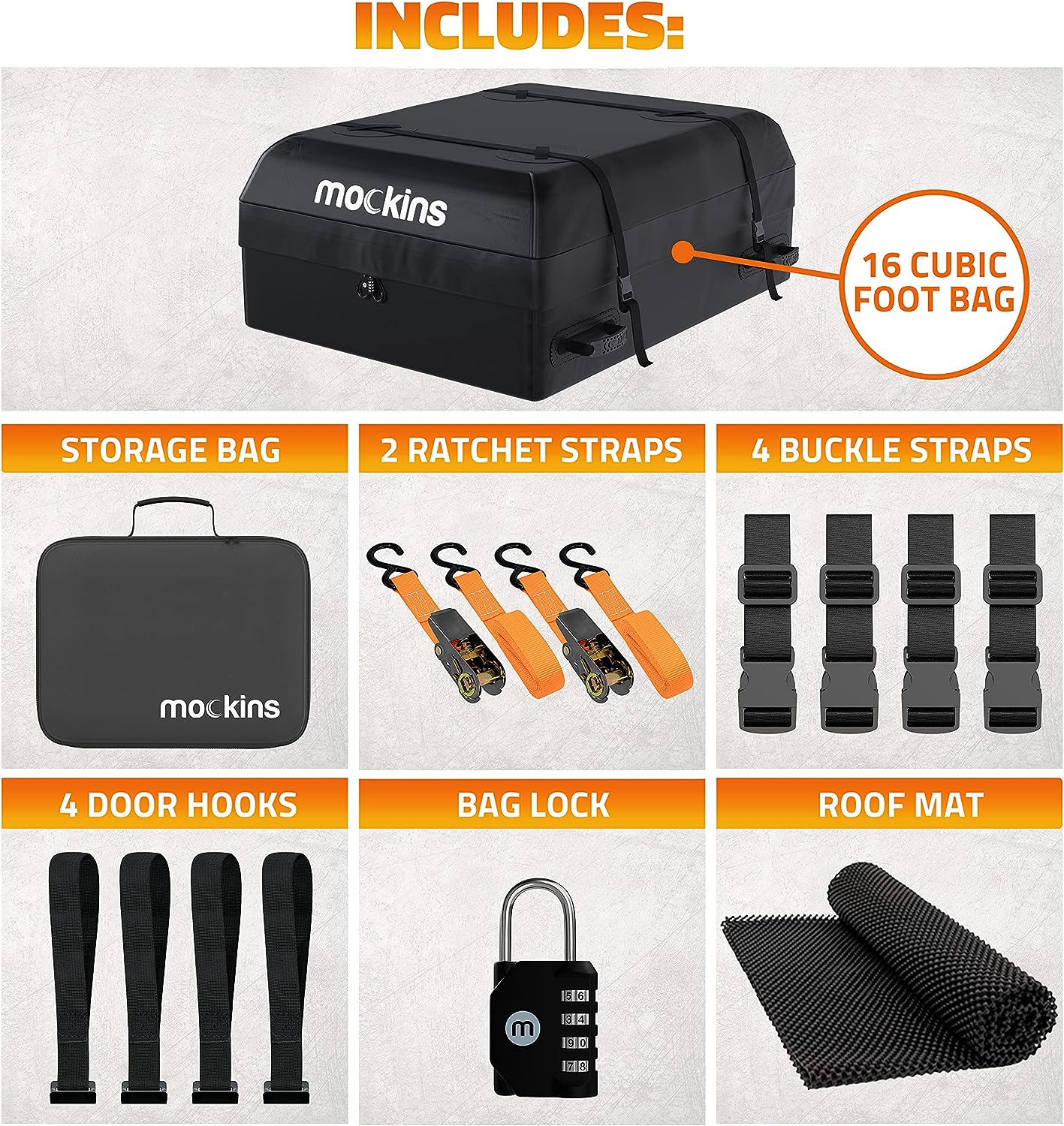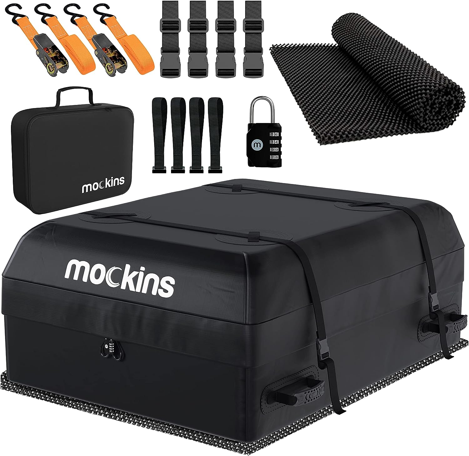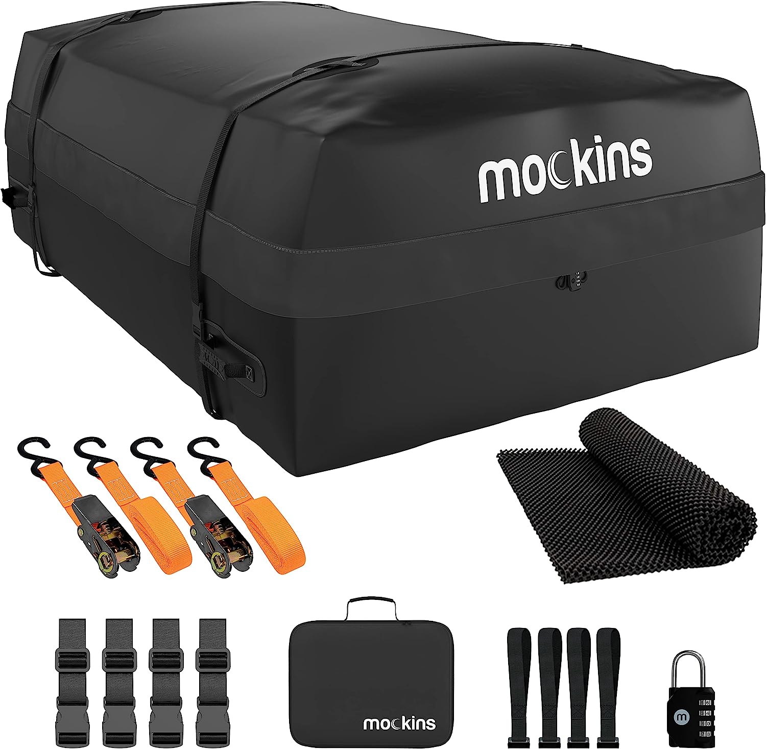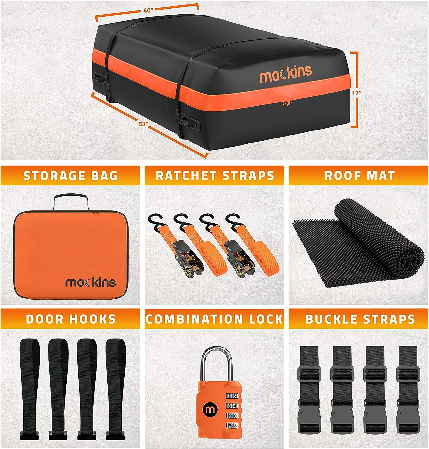 Mockins 25 Cubic Feet Rooftop Cargo Bag Set 60"x43"x17" Car Roof Storage Bag | Roof Bag Waterproof Carrier for Vehicles with/Without Rack | Roof Rack Storage Roof Cargo Bag | Car Top Carrier Roofbag