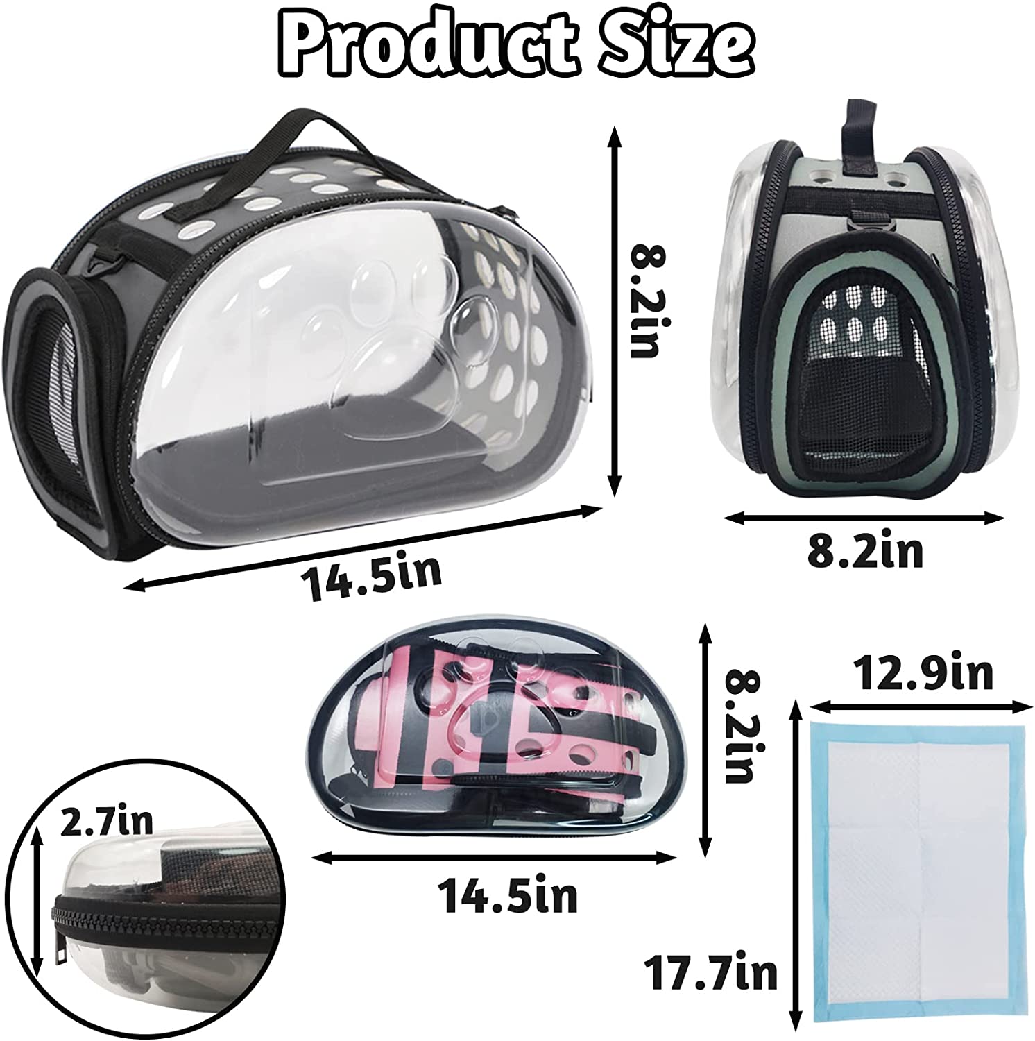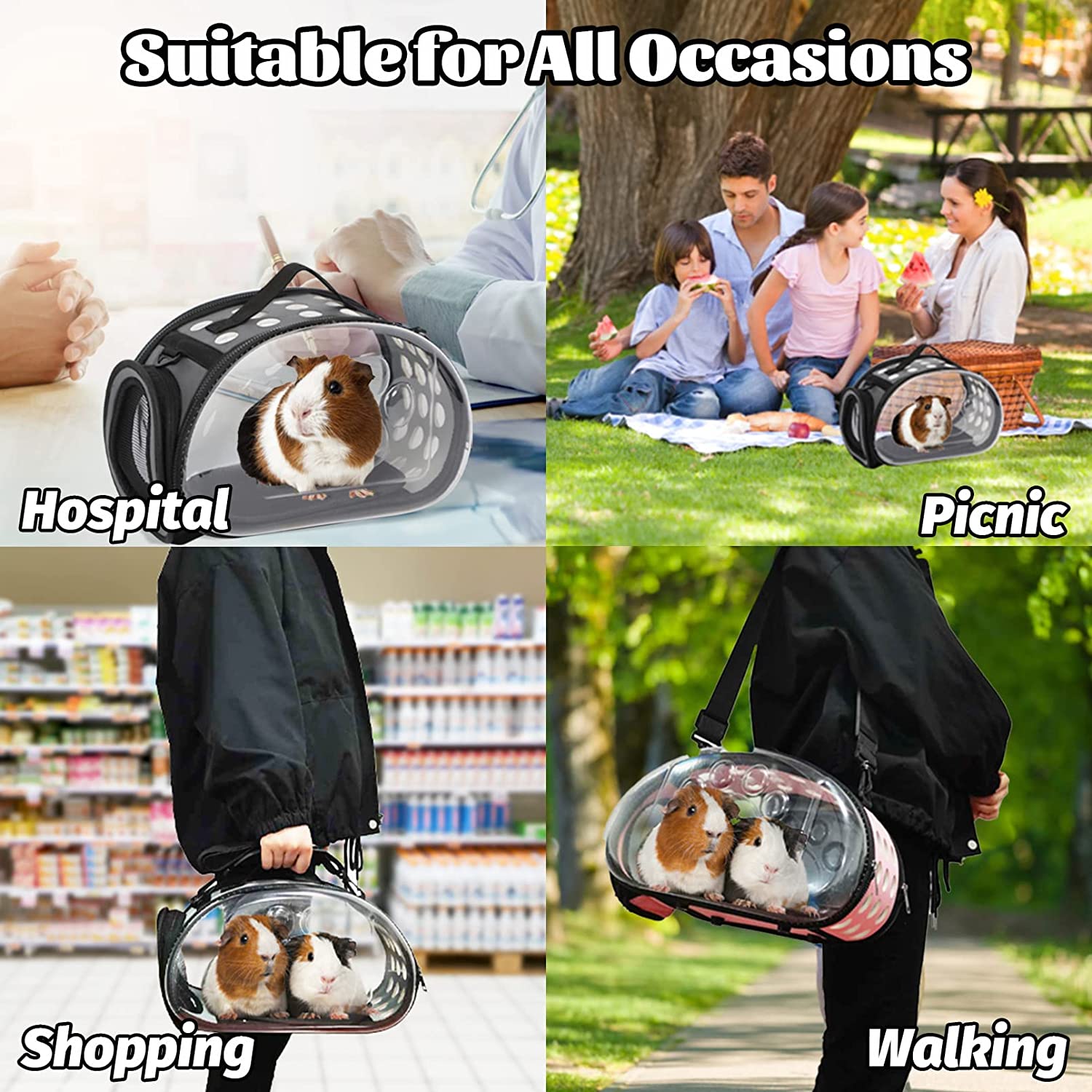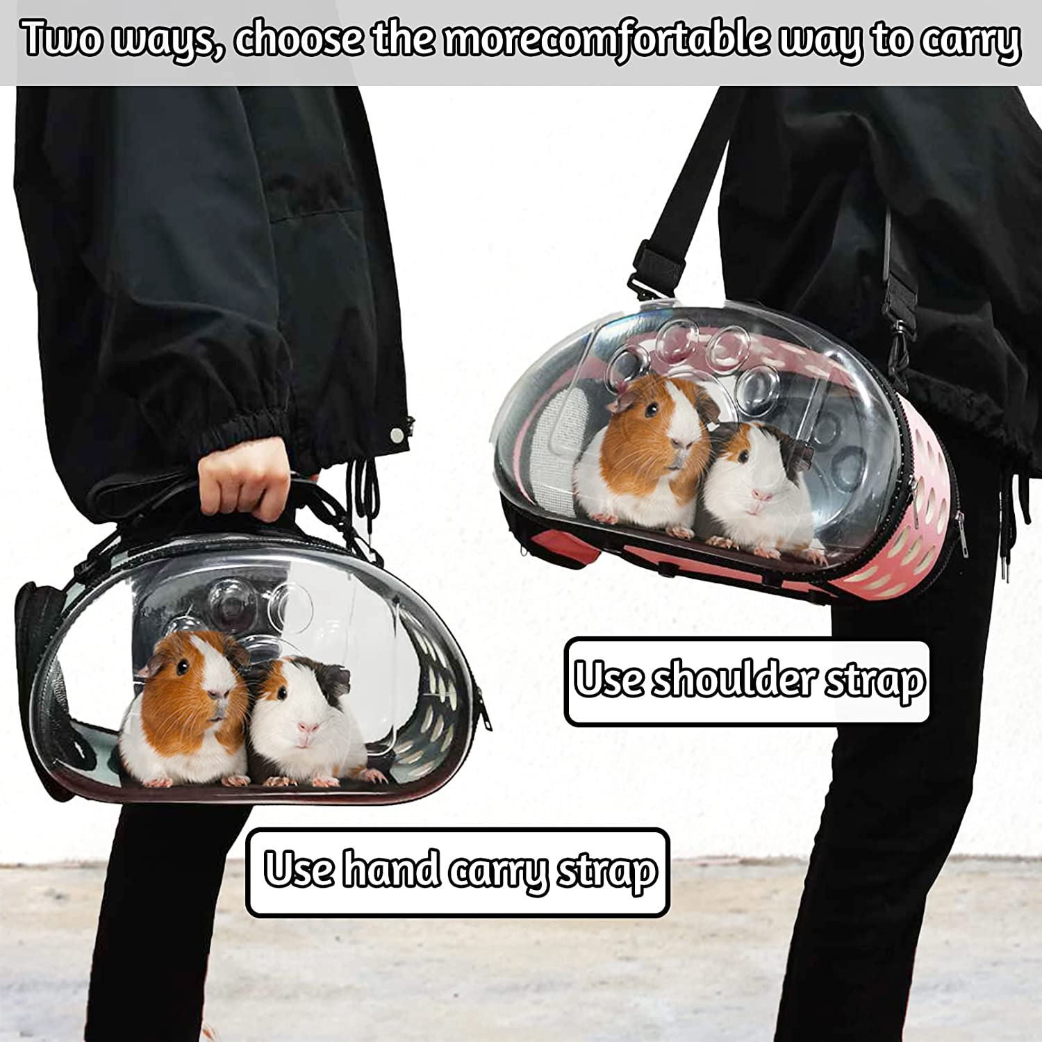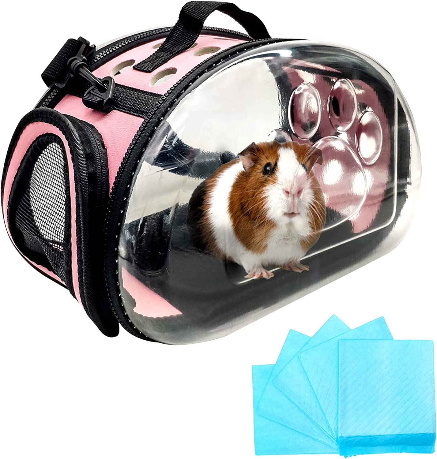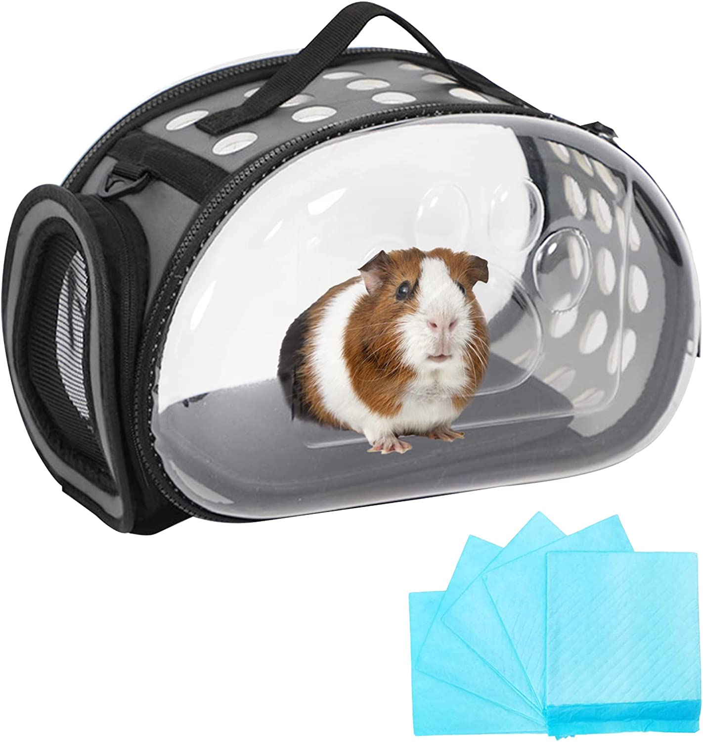BNOSDM Small Animal Carrier Bag,Portable Guinea Pig Carrying Case with 5PCS Disposable Underpads Breathable Hedgehog Travel Cage Transparent Outdoor Package for Bird Squirrel Chinchilla