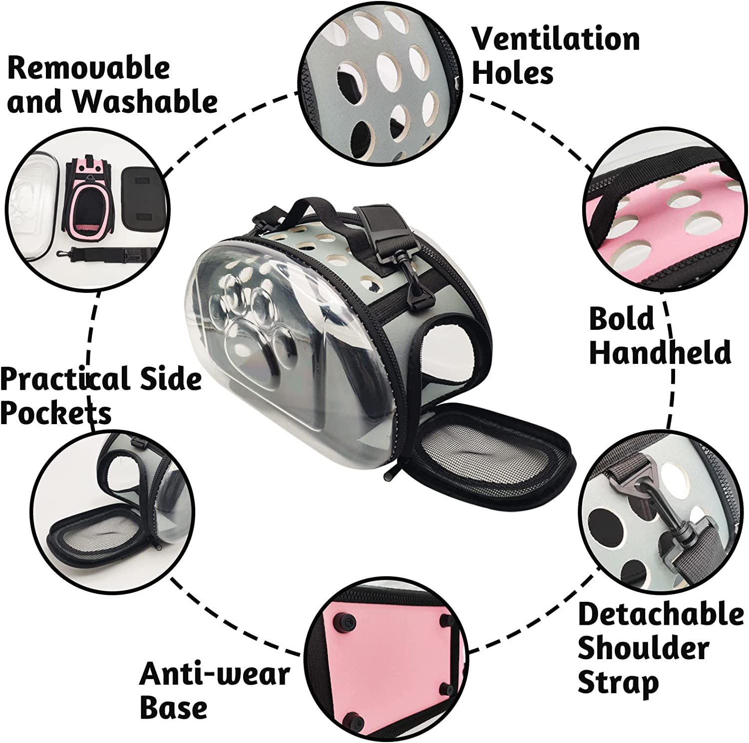 • 【Foldable Design]】The small pet carrier adopts foldable design,which can be disassembled and cleaned when it is not needed. The cushion can be washed by hand or machine. The shell can be washed directly with water,and stored after drying,saving space.