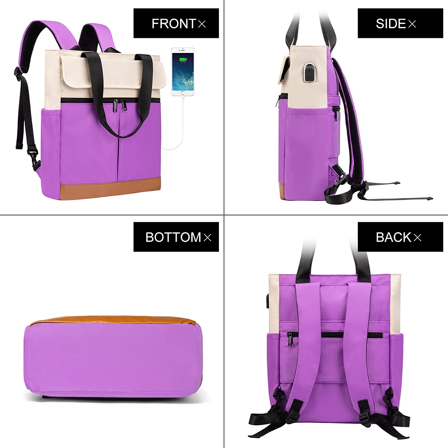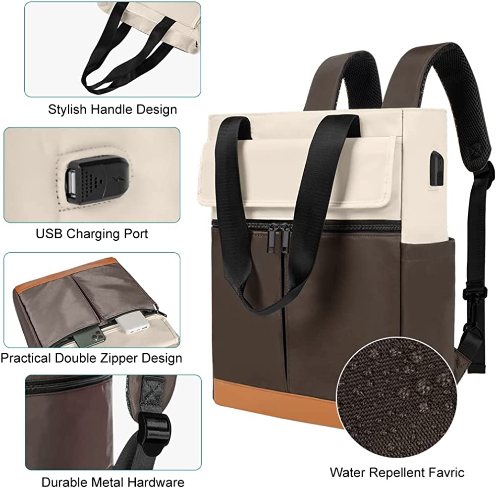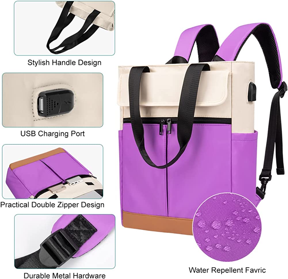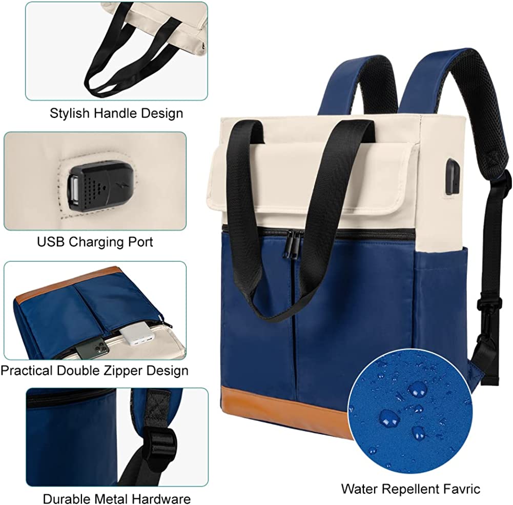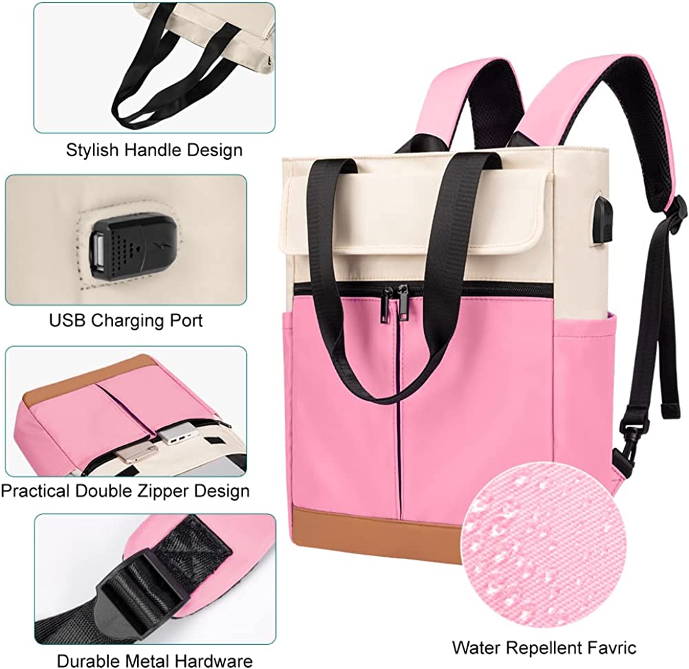 CYUREAY Women Convertible Tote Daypack Laptop Backpack College School Travel Casual Bag Fits 15.6 Inch Laptop