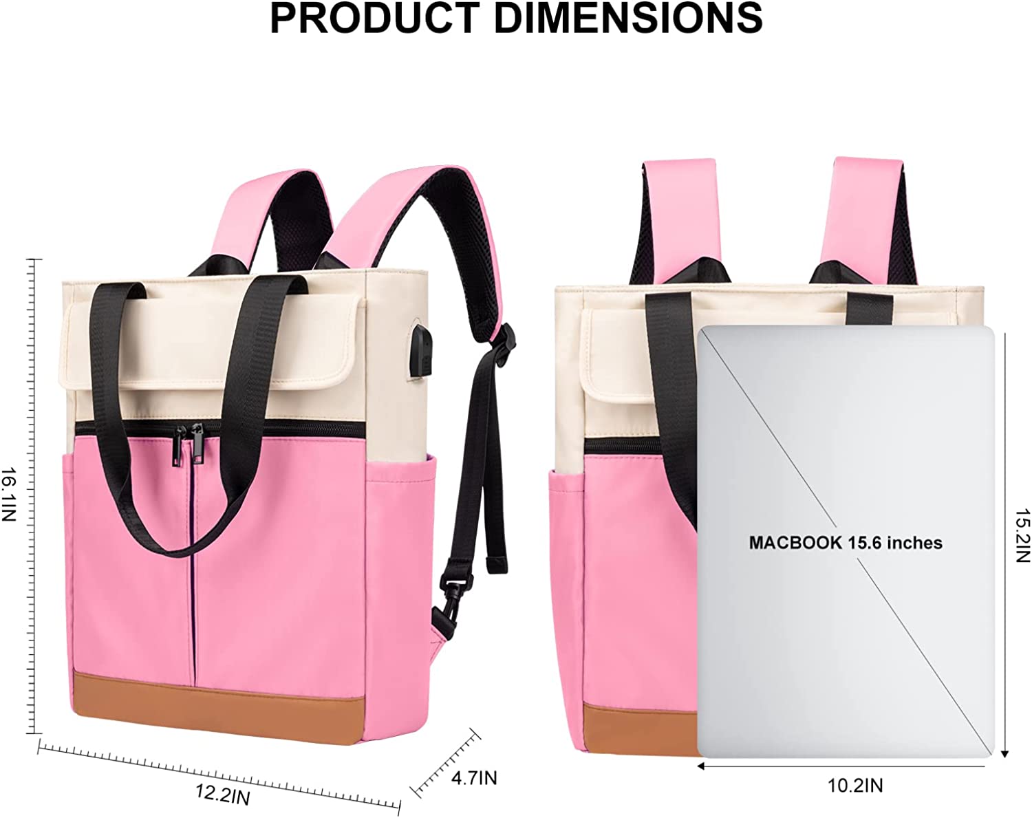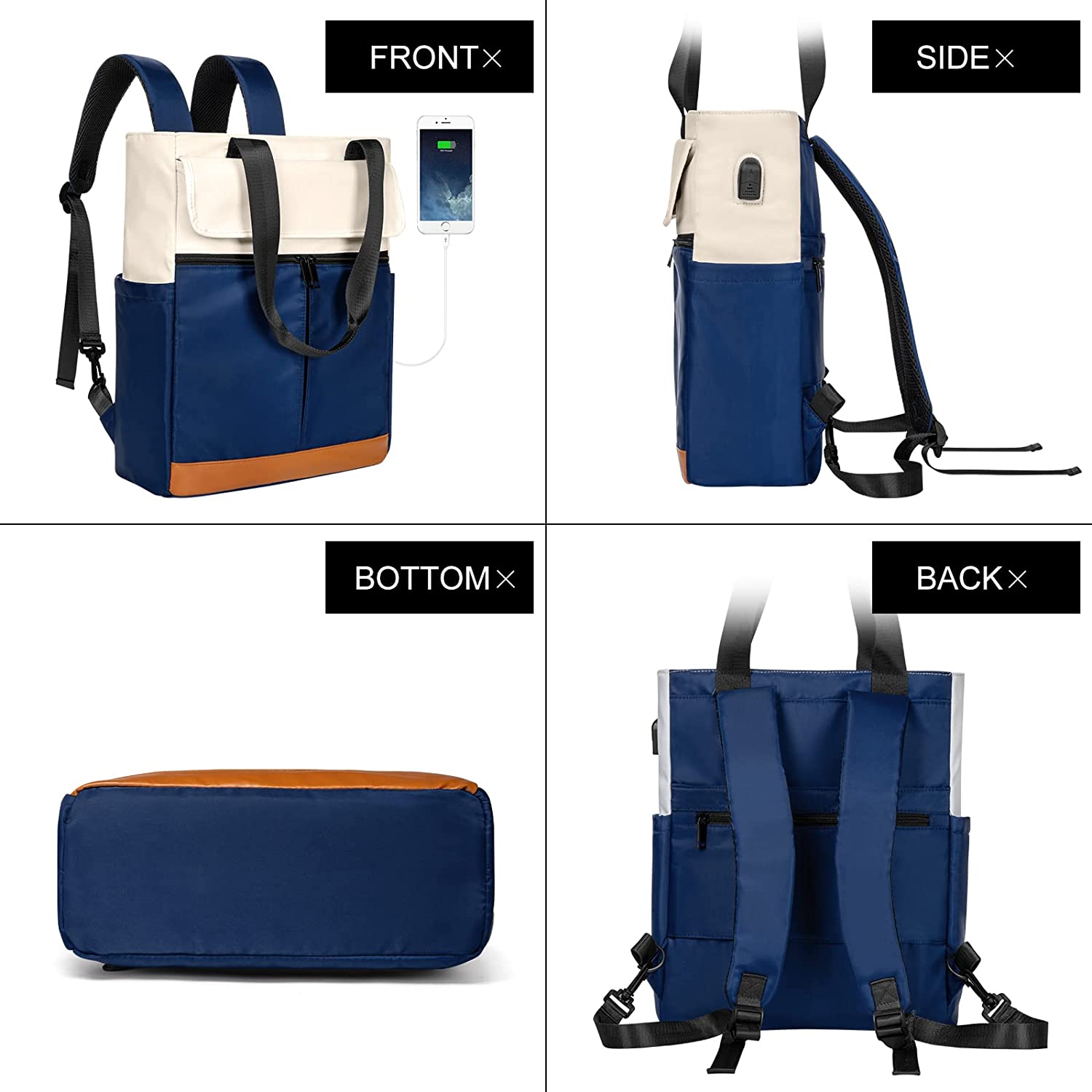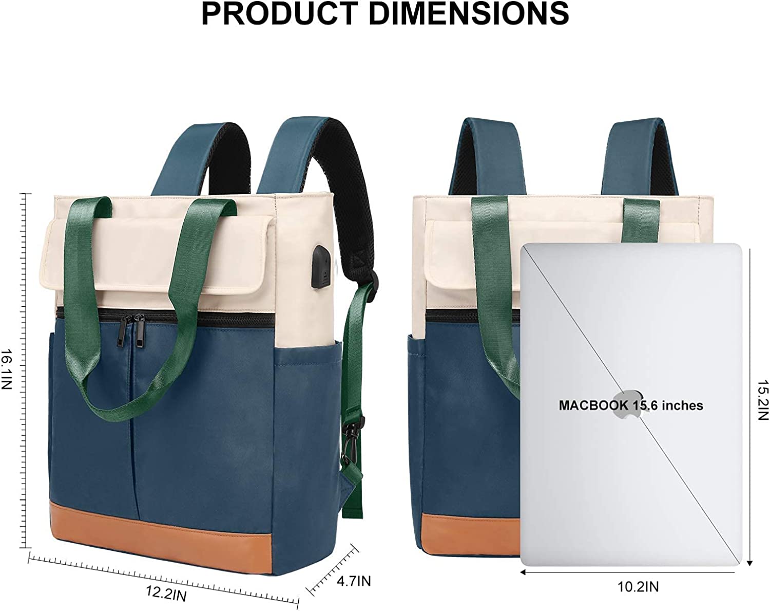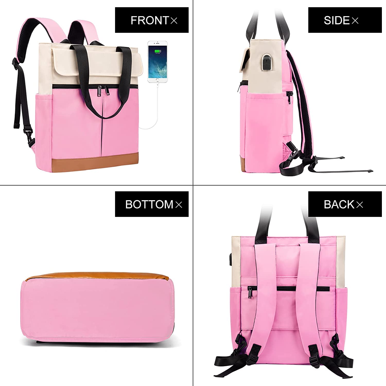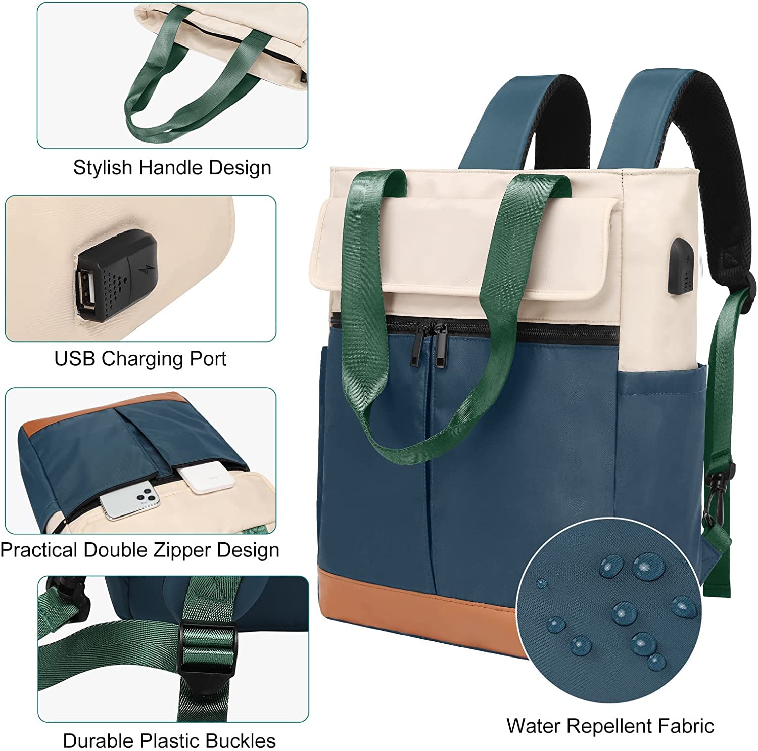 CYUREAY Women Convertible Tote Daypack Laptop Backpack College School Travel Casual Bag Fits 15.6 Inch Laptop