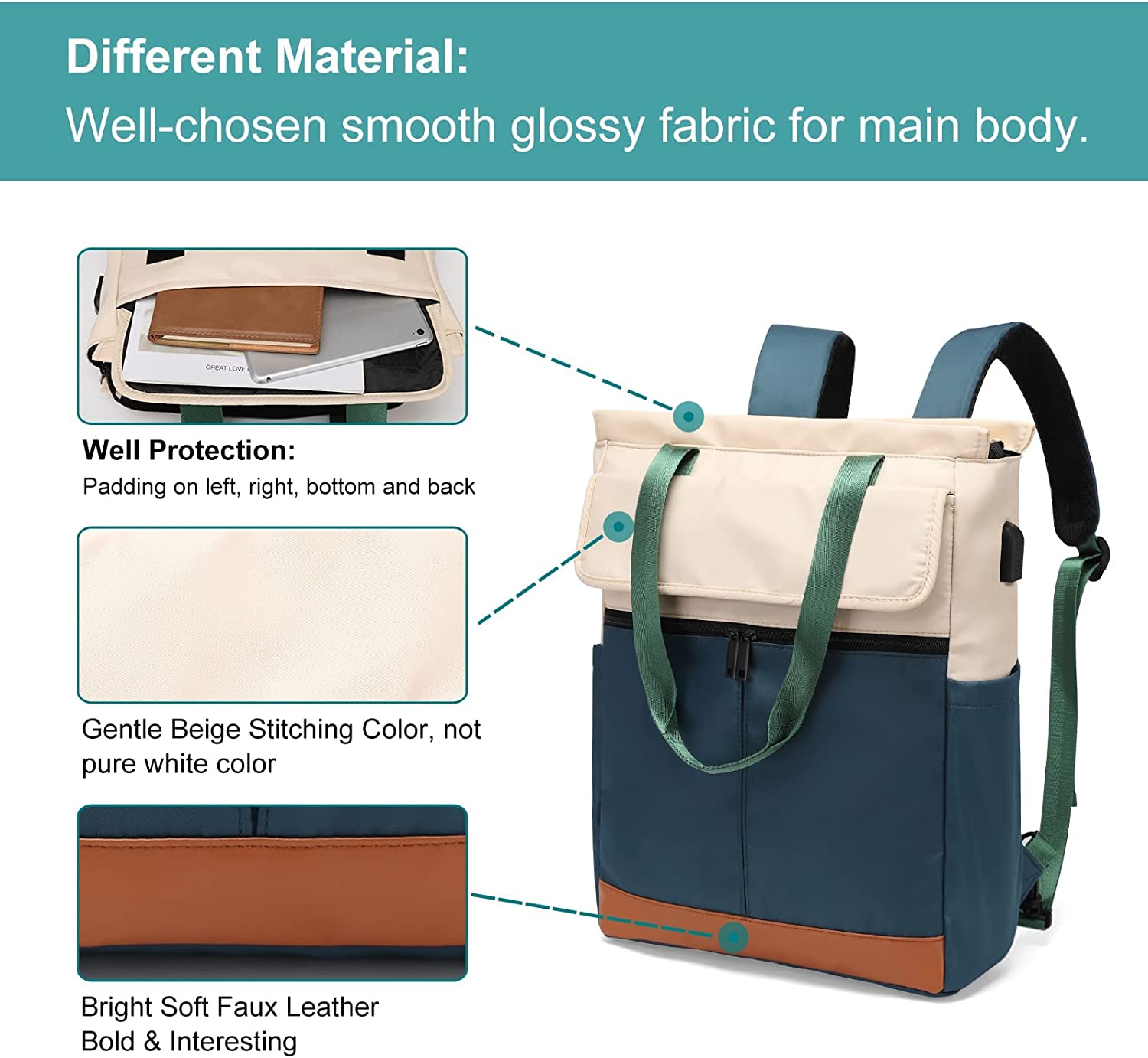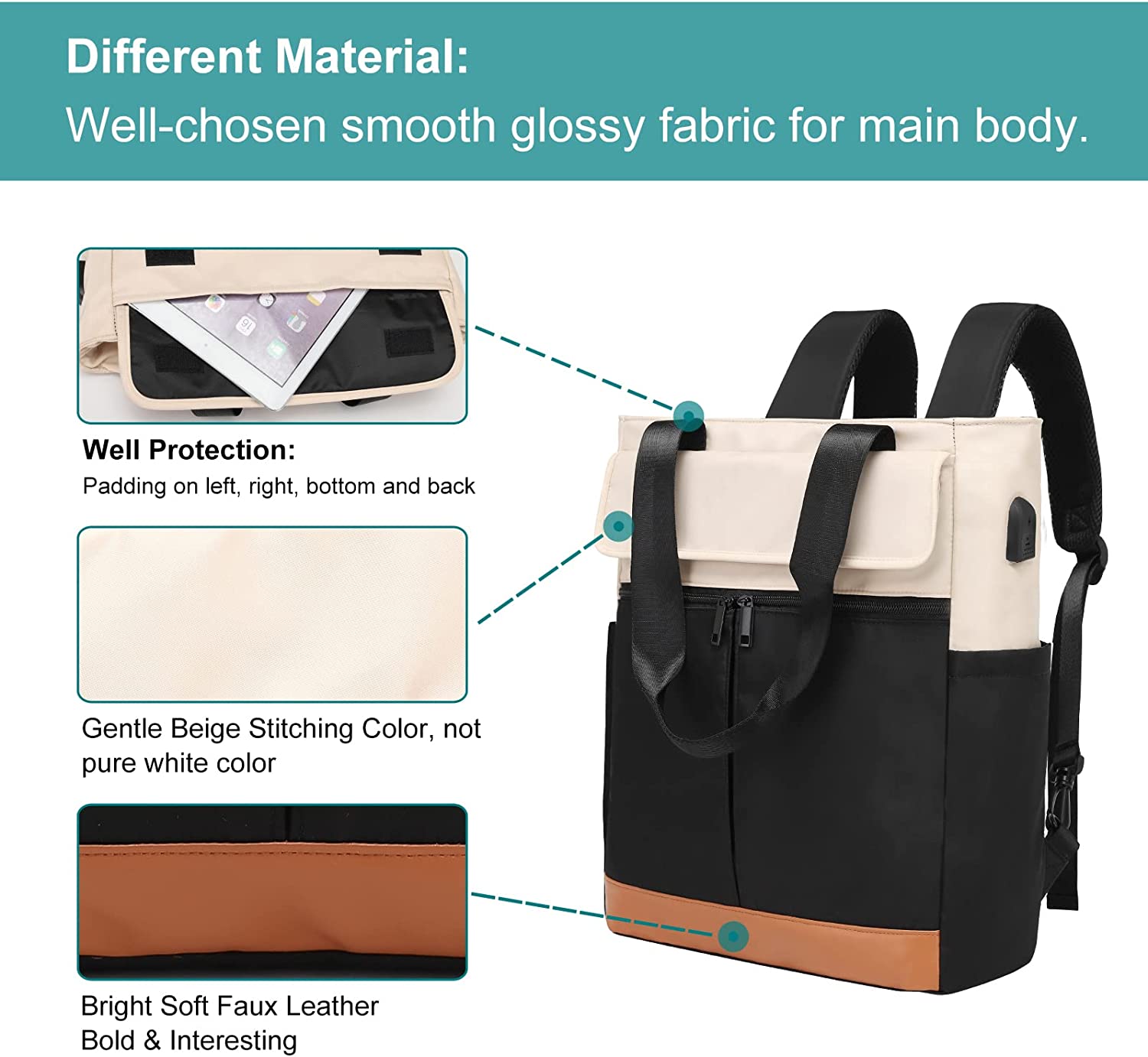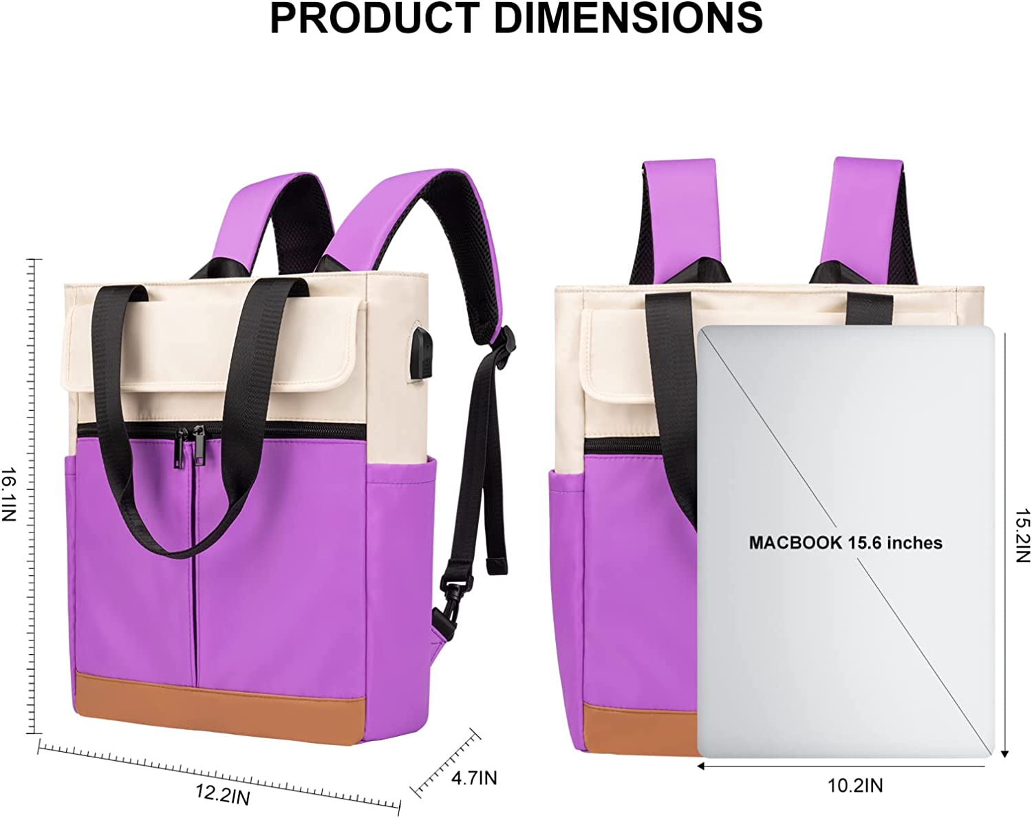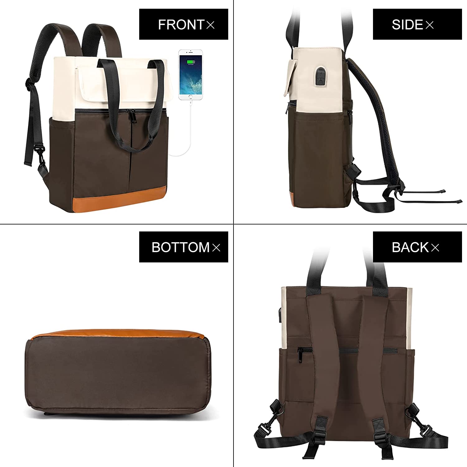 • USB Charging Port: Built-in USB port design allows you conveniently to charge cell phone by connecting power bank without opening backpack on the go. (Power bank is not included)