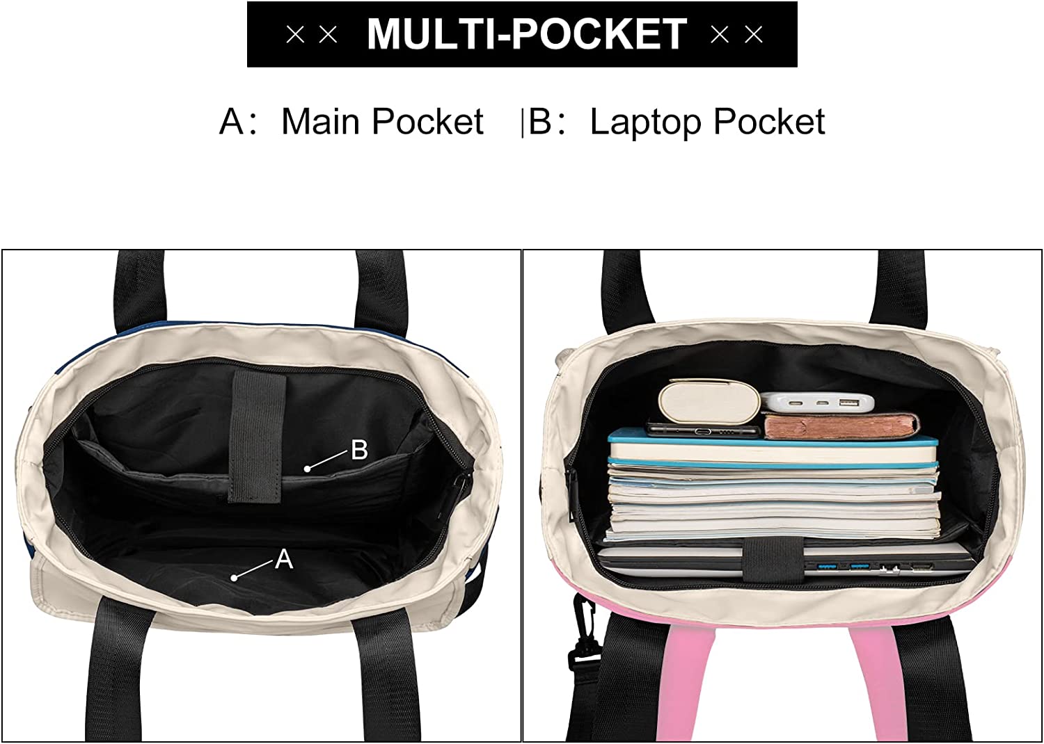 • Waterproof nylon material. Dimensions: 16.5"L x 4.7"W x 12.2"H. Weight: about 3 Pounds. The white part is more like gentle beige color, not pure white color.