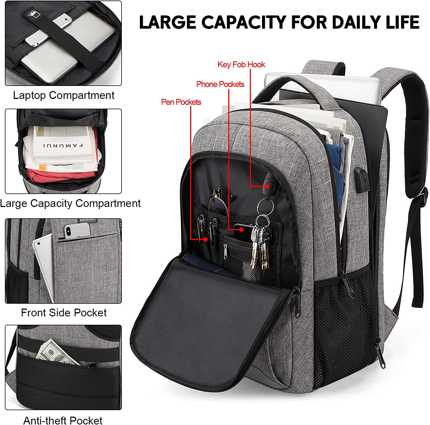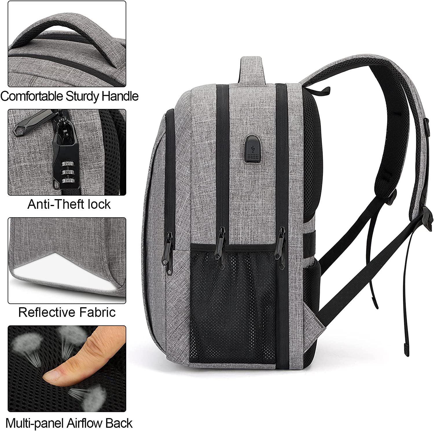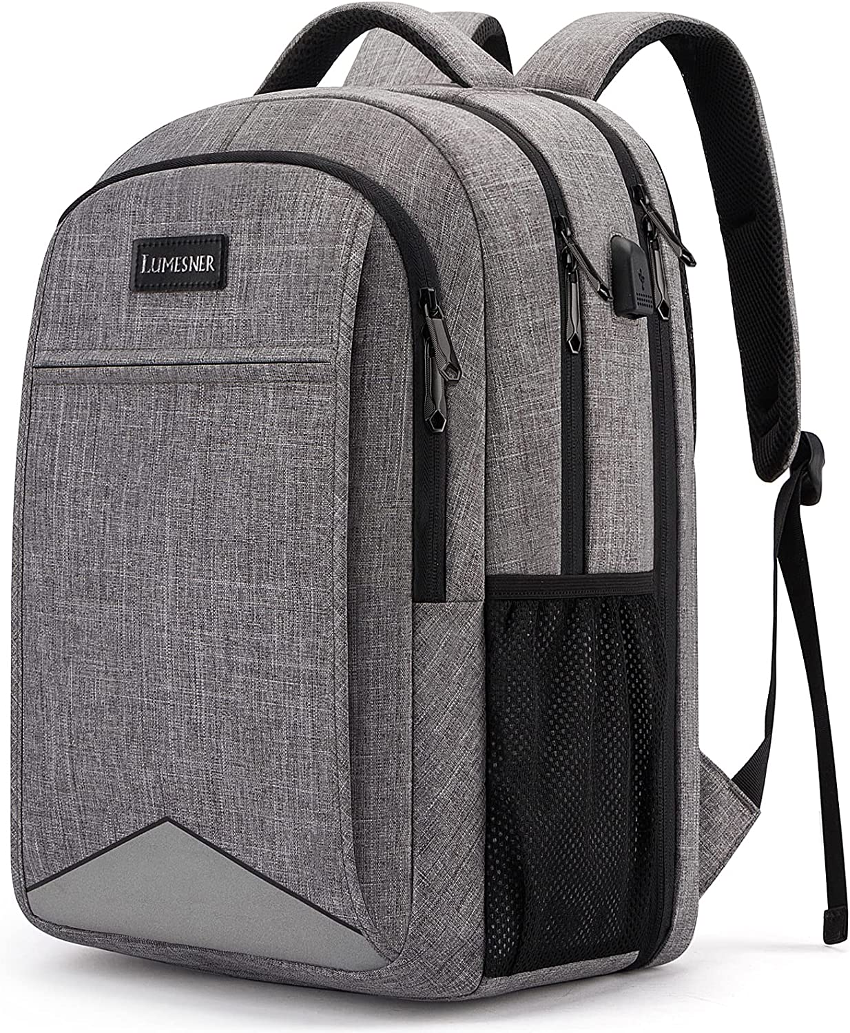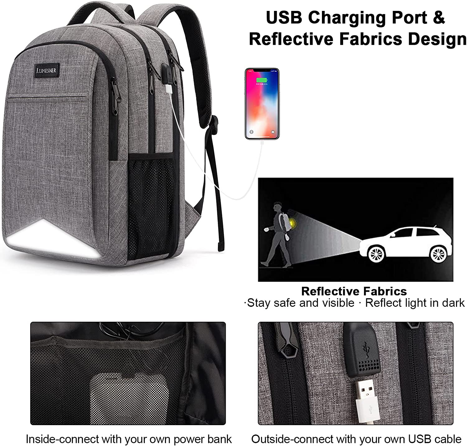 Lumesner Laptop Backpack for Men,Water Resistant Travel Laptop Backpack with USB Charging Port,Anti Theft College School Backpack Laptop Bag for Women Fits 15.6 Inch Computer and Notebook-Grey