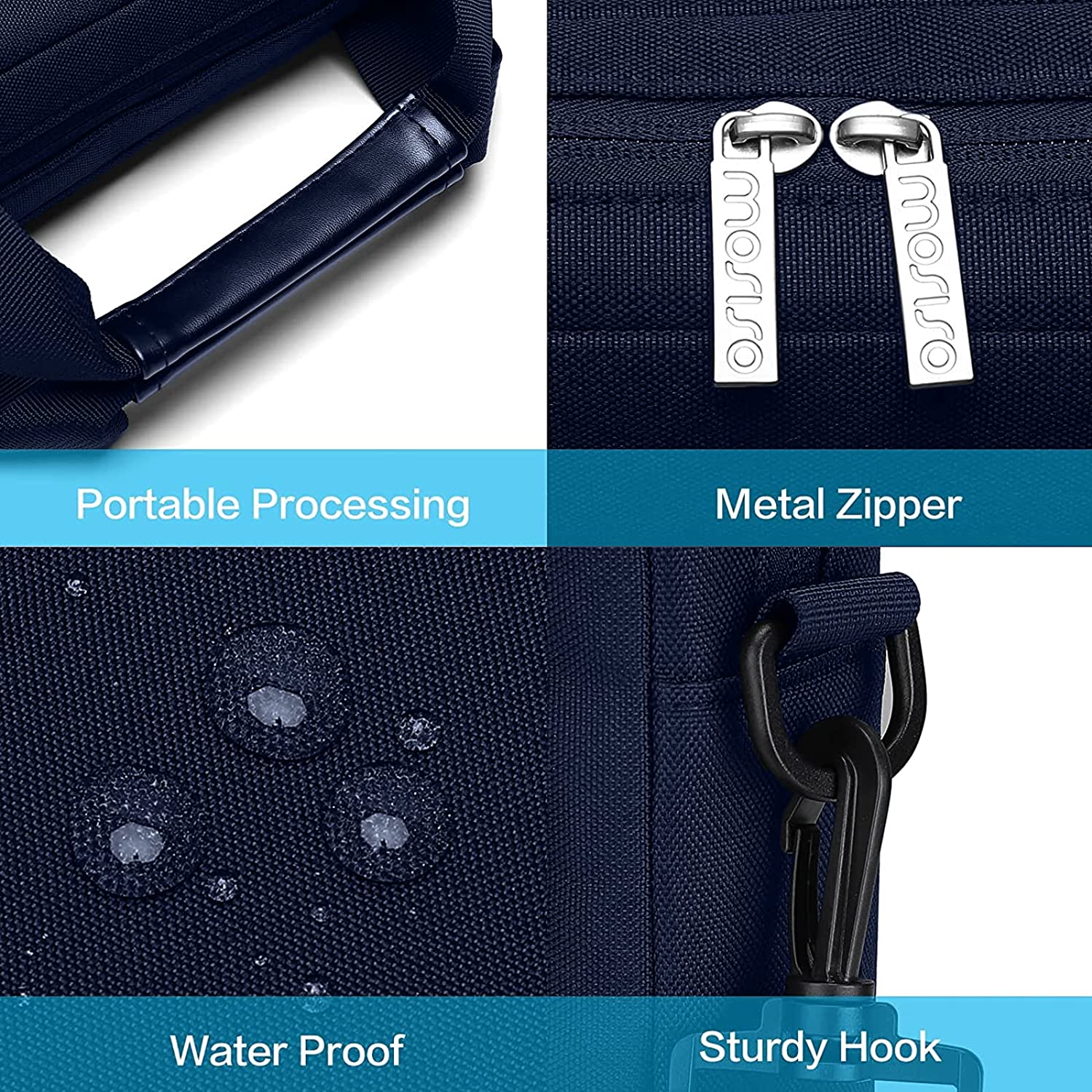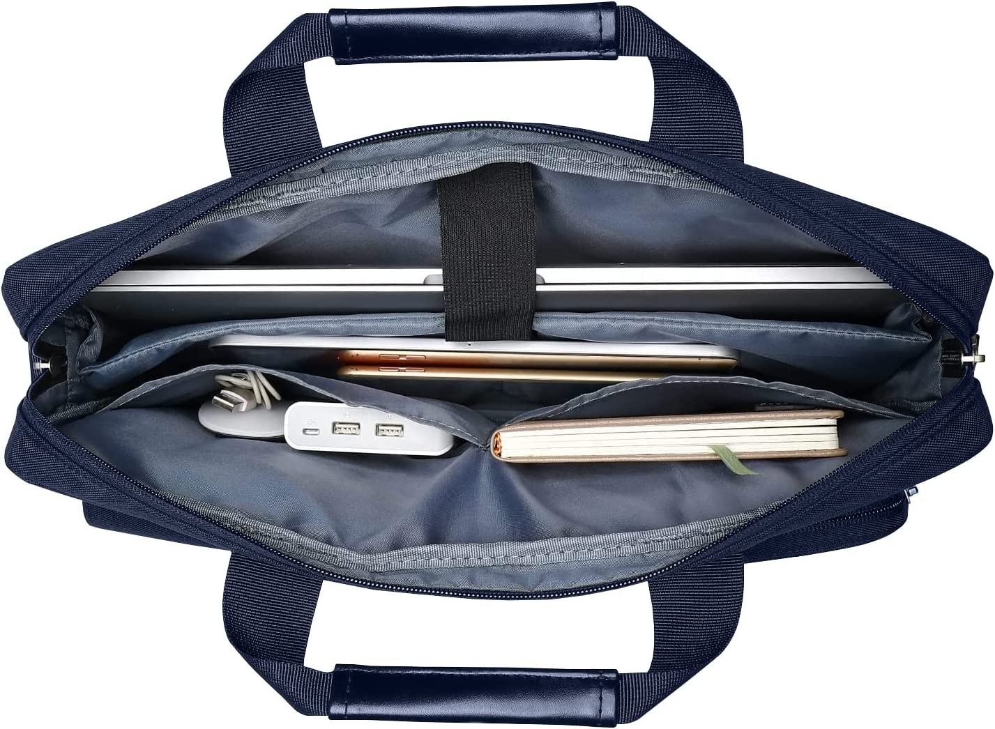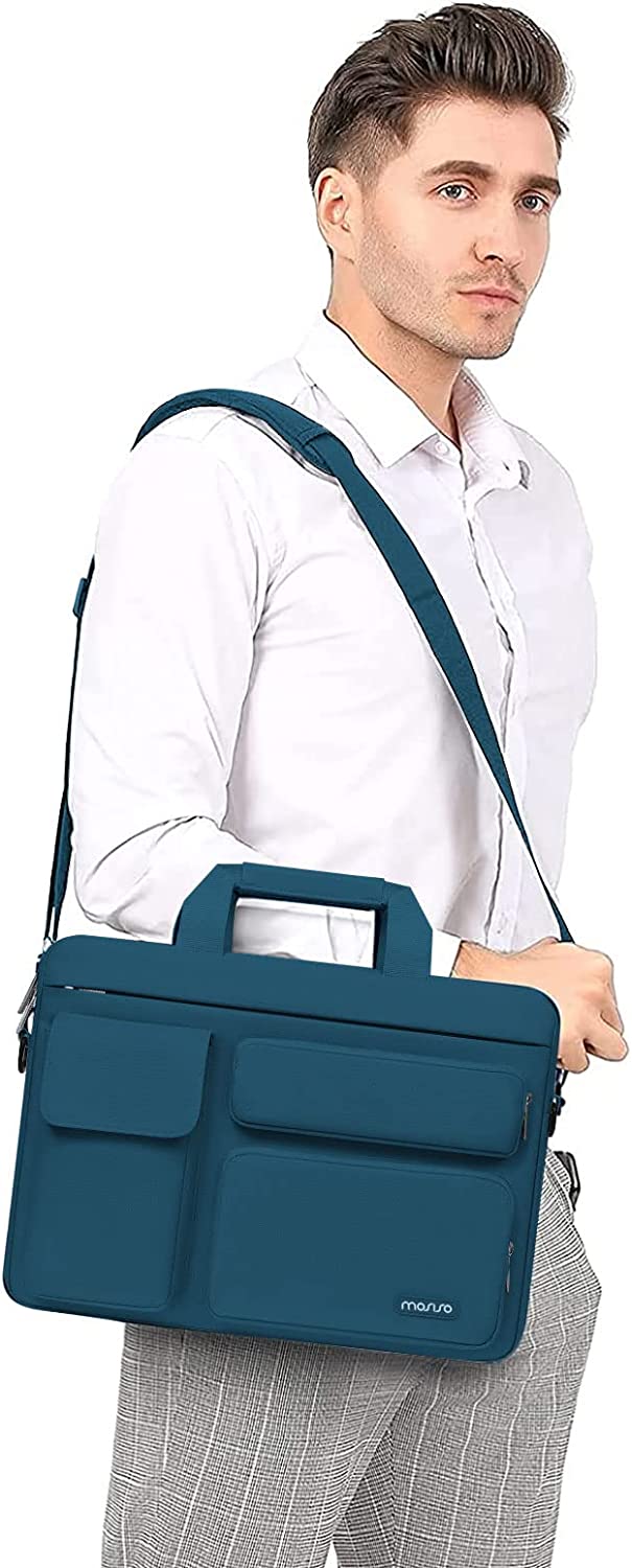 • The main inner compartment holds your laptop and other important things. 2 raised & 1 flapover & 1 horizontal pockets are convenient for quick-access and store cell phone, pen slots, wallet, keys and other small items. Multifuncional 4 front pockets design laptop shoulder bag enables you to carry your laptop/notebook/ultrabook computer in a uniquely sleek style.