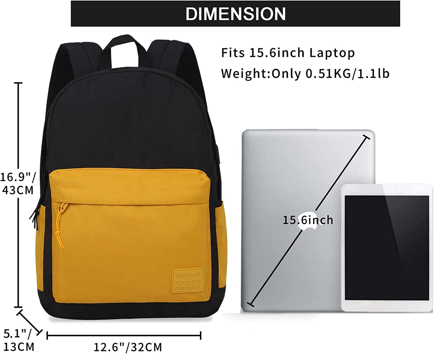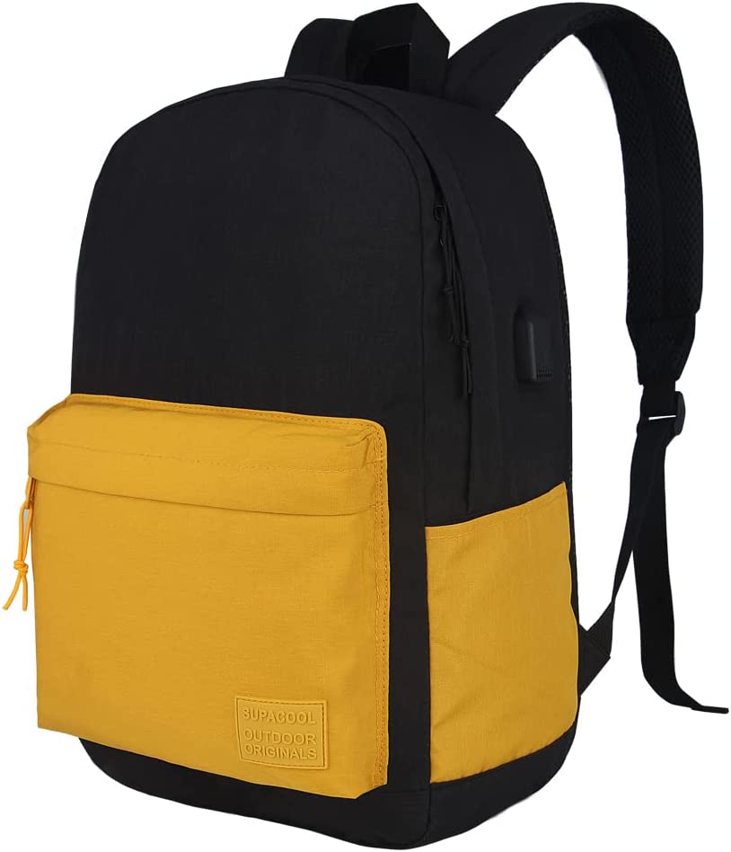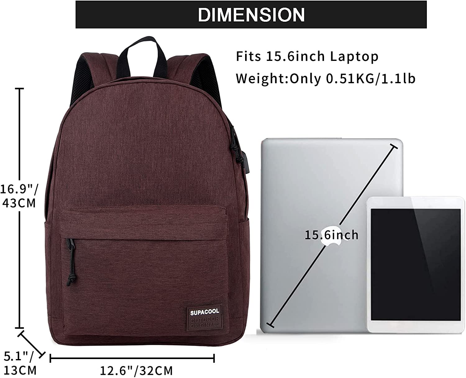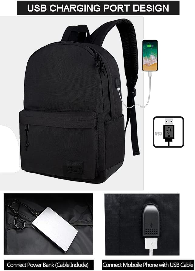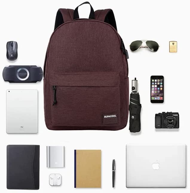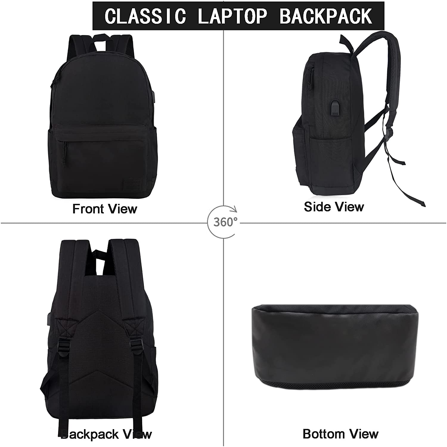 SUPACOOL Lightweight Casual Laptop Backpack with USB Charging Port For for Men and Women, School Bookbag for College (Full Black)