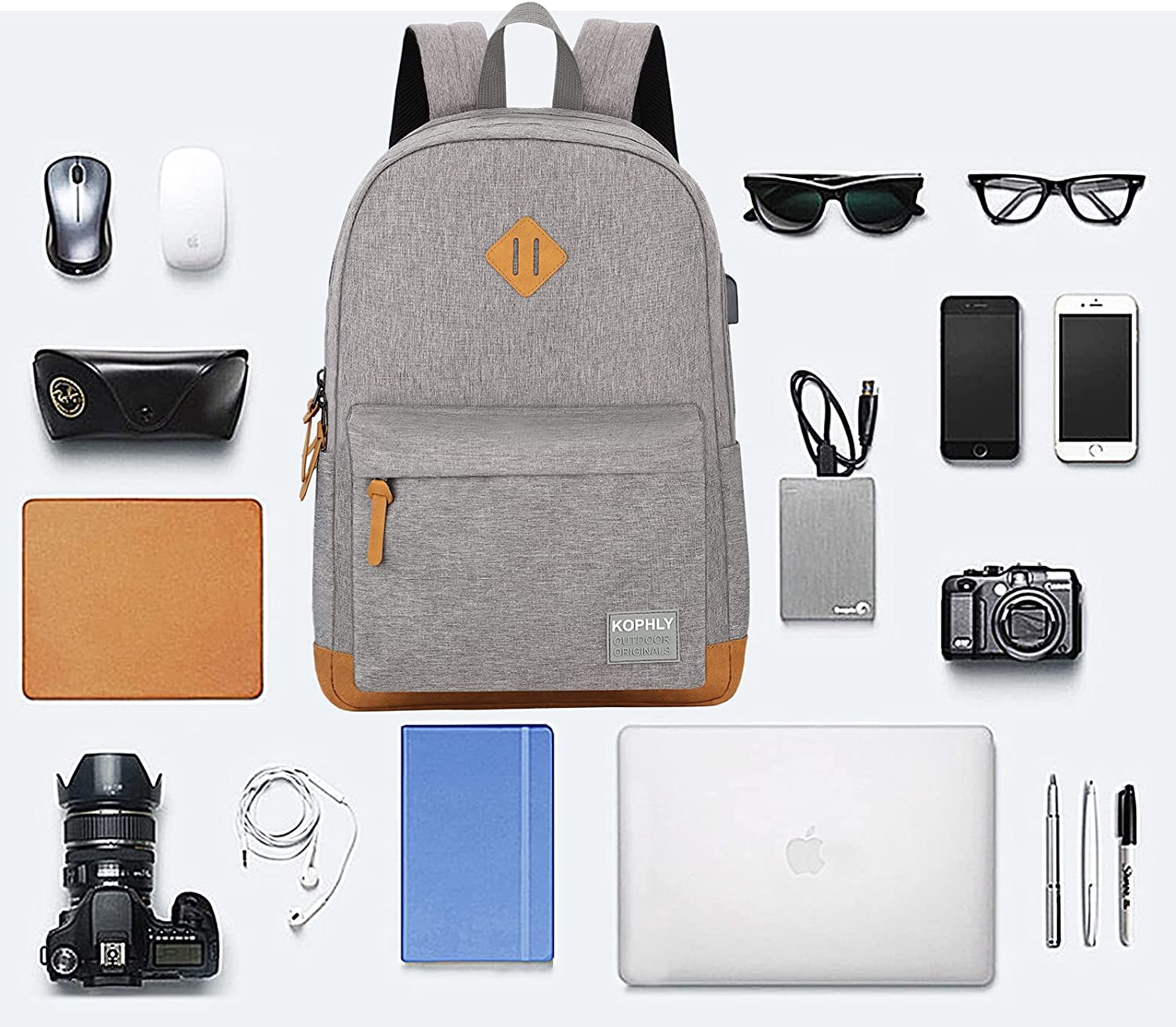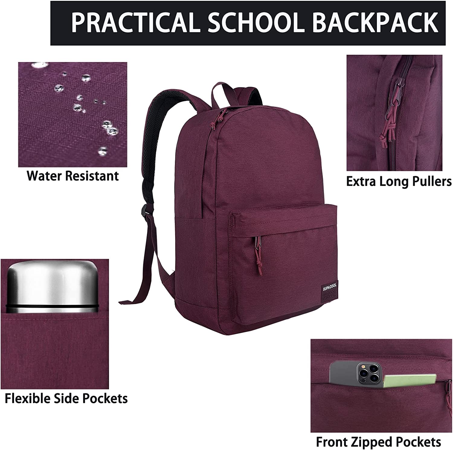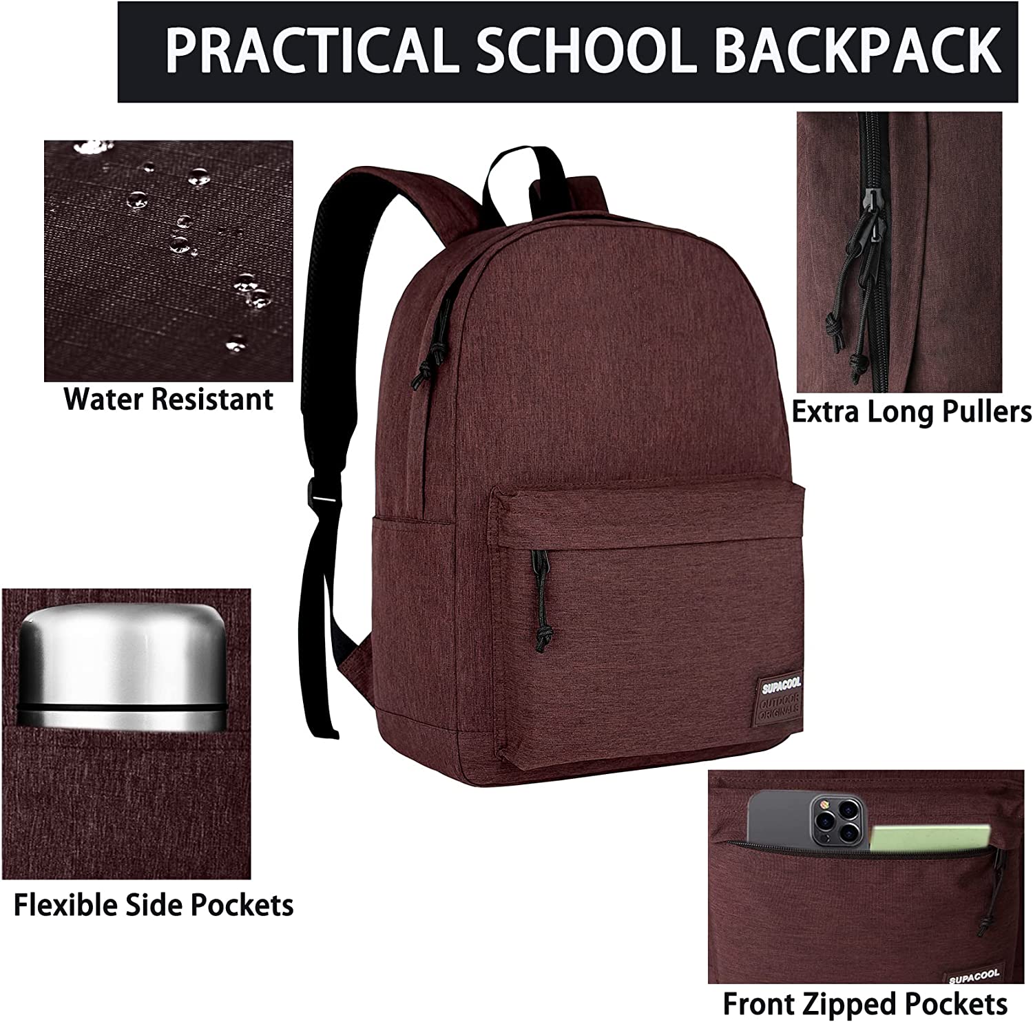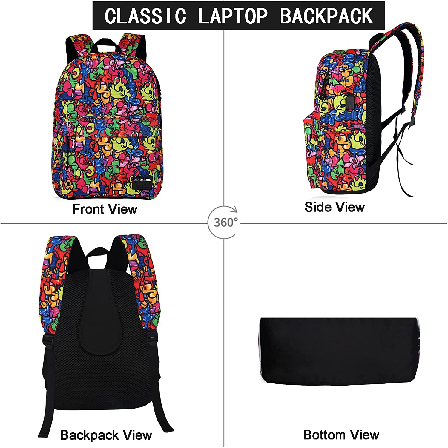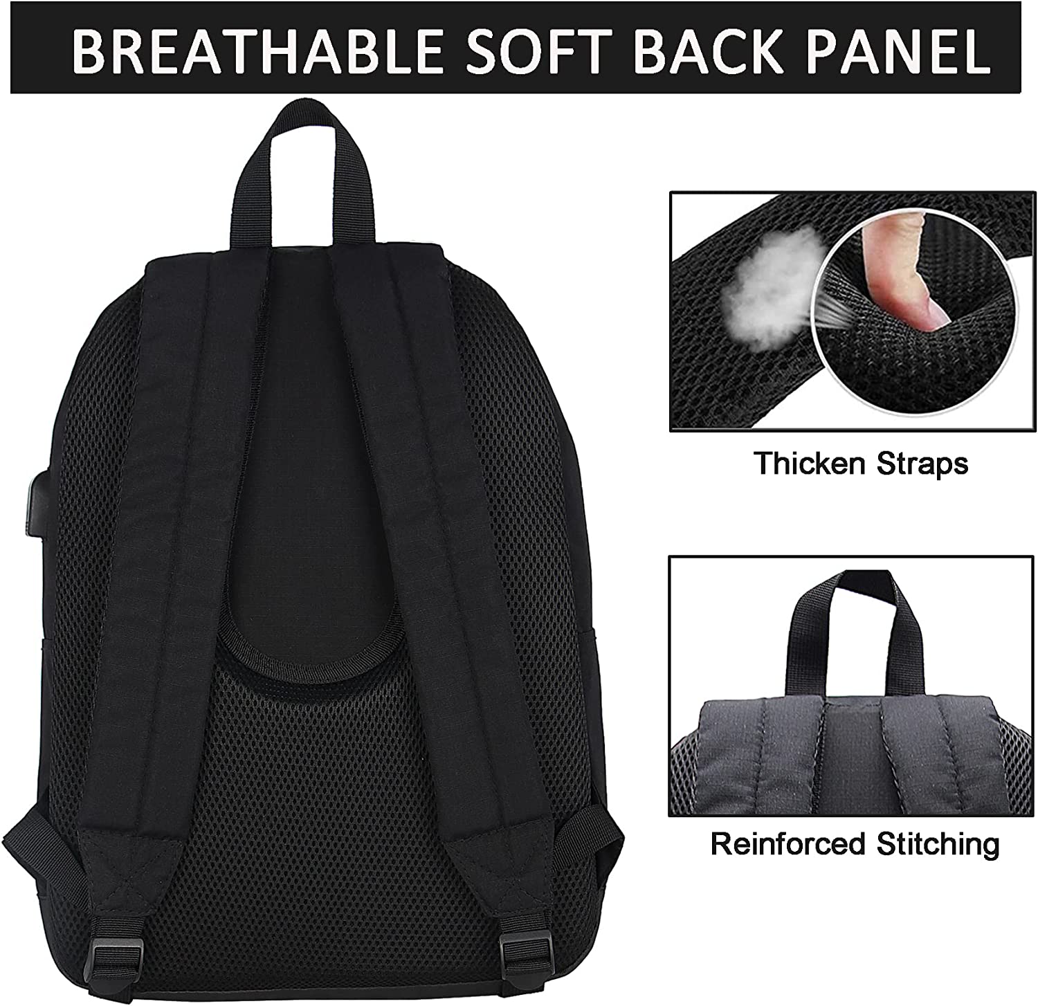 SUPACOOL Lightweight Casual Laptop Backpack with USB Charging Port For for Men and Women, School Bookbag for College (Full Black)
