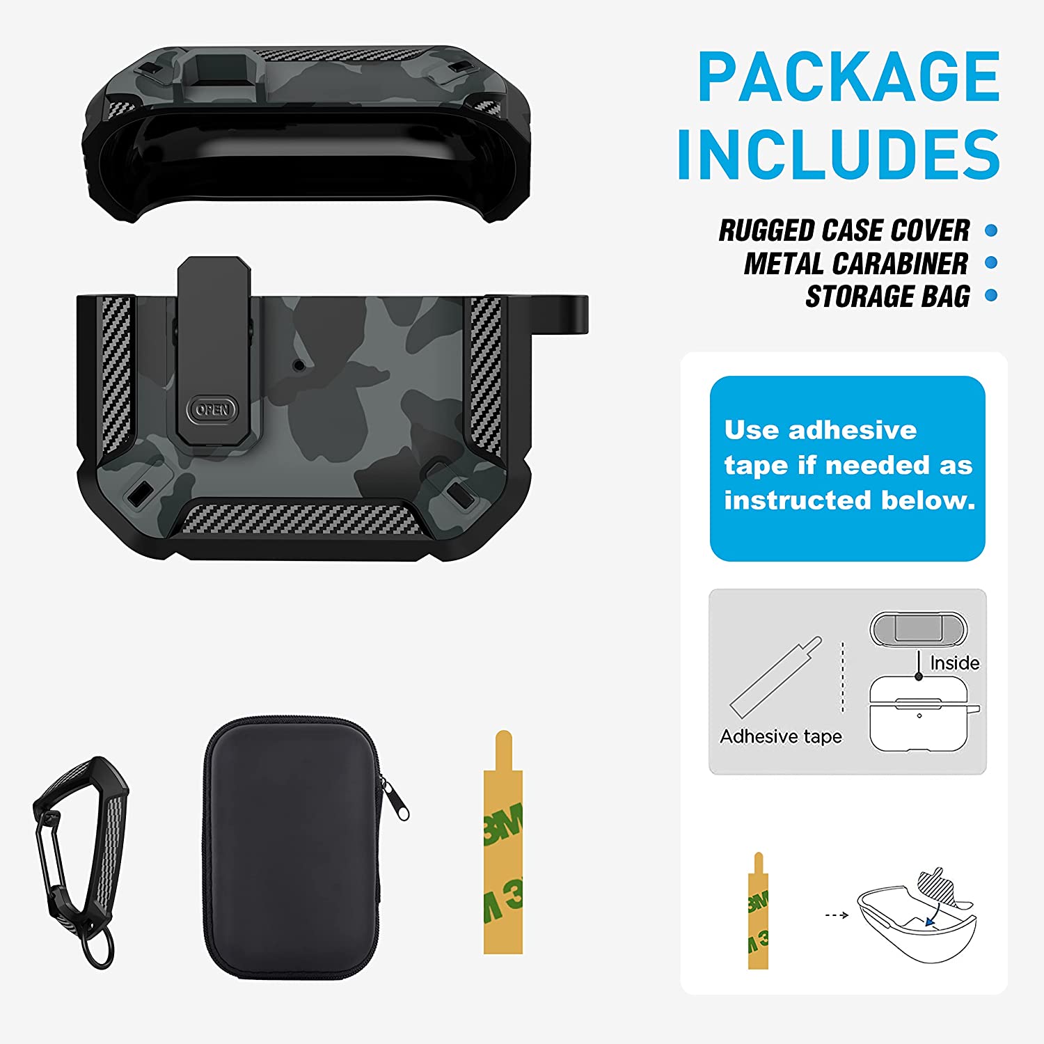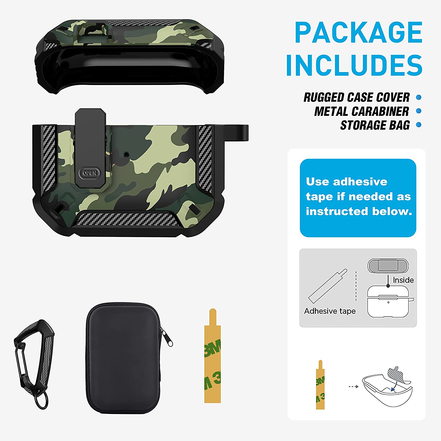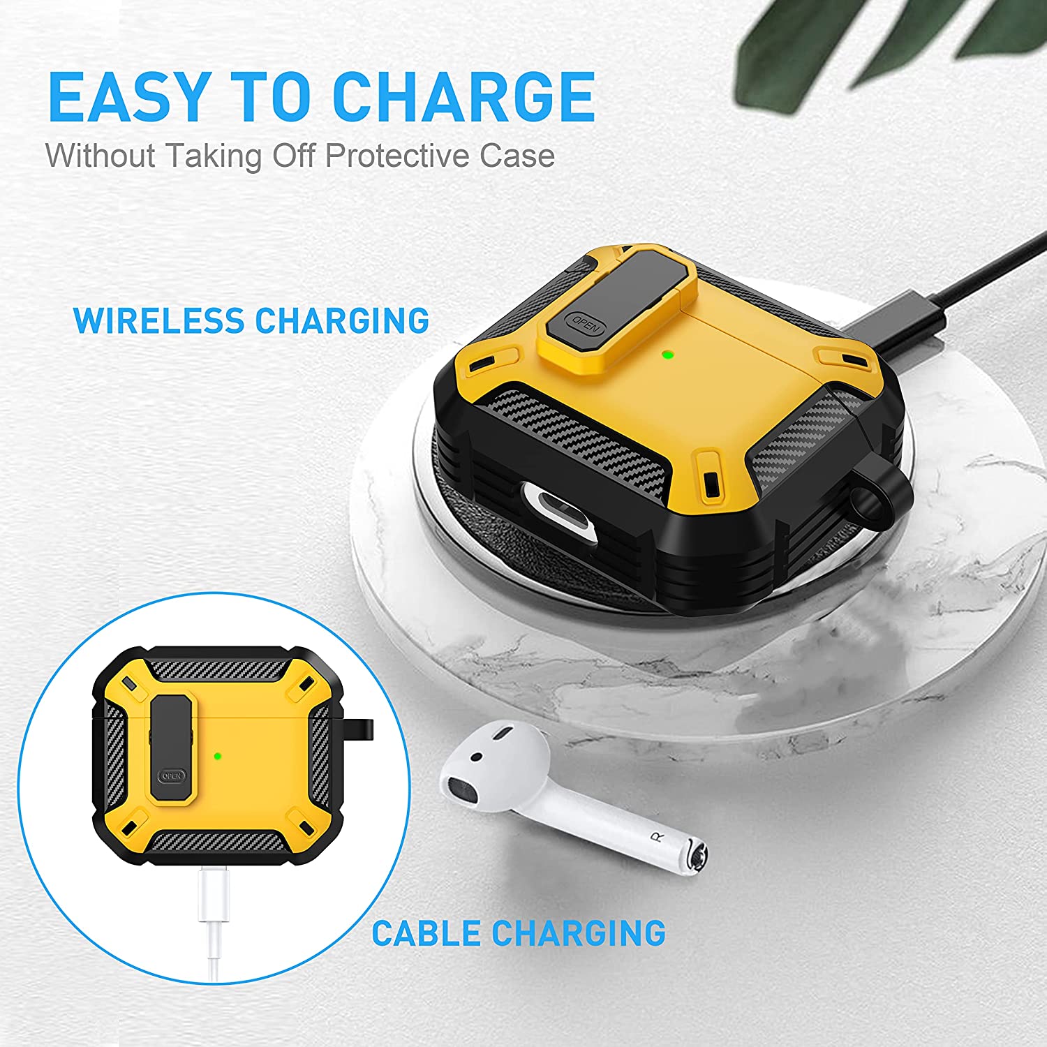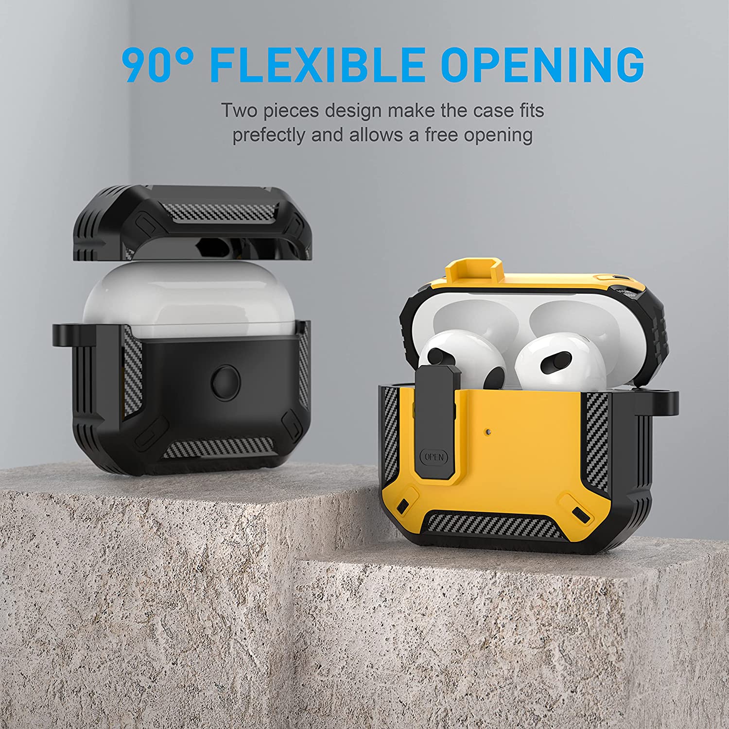 • 【Military AirPods 3 Cover with Secure Lock】 Military shockproof Airpods 3 cover made of TPU and PC materials to makes the AirPods 3 case anti-shock, anti-slip and anti-fingerprint. Secure lock design, easy to open and close top cover with the open button