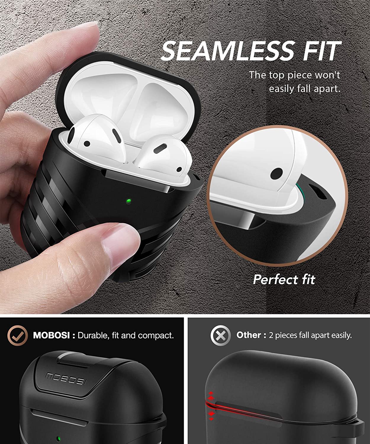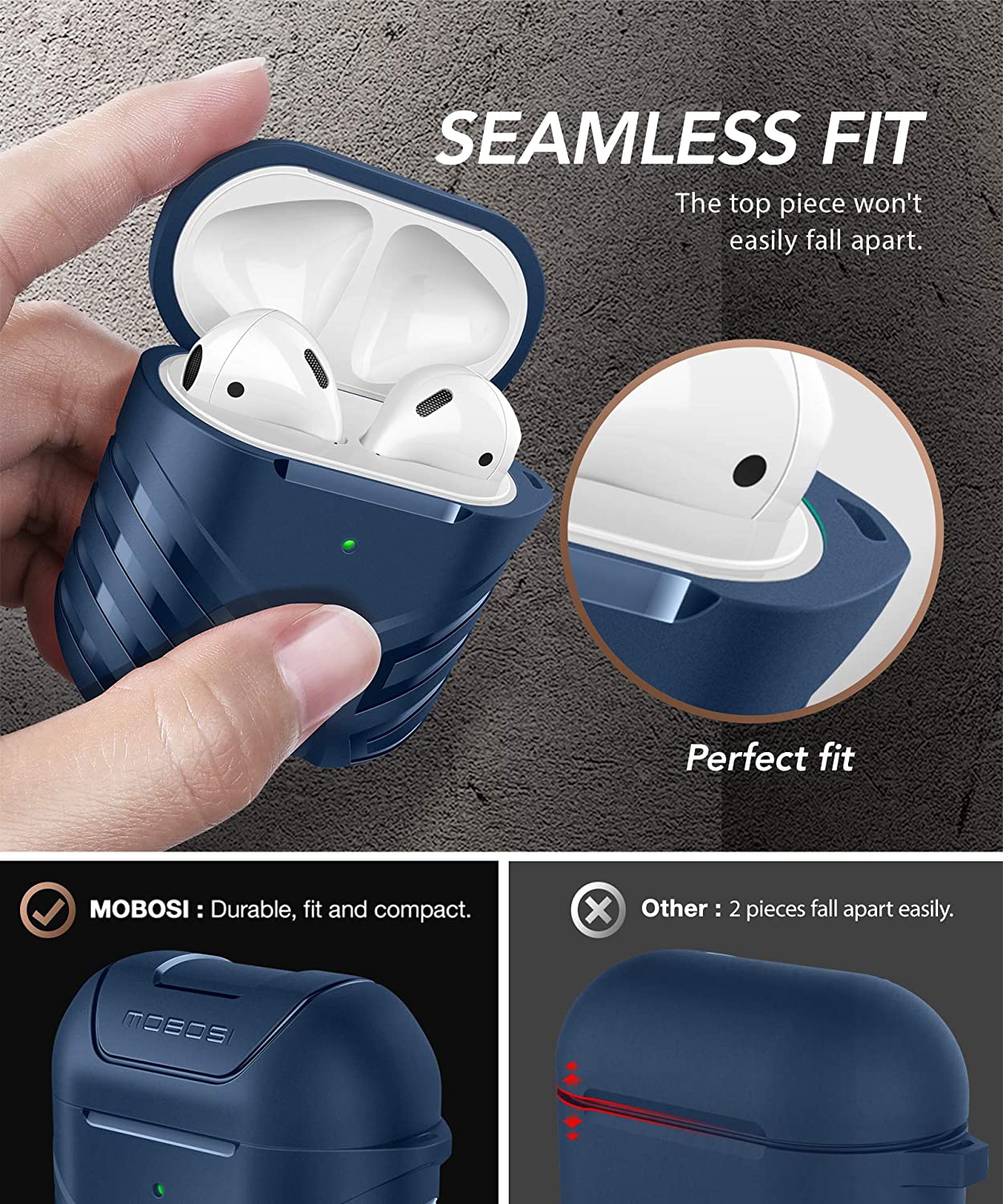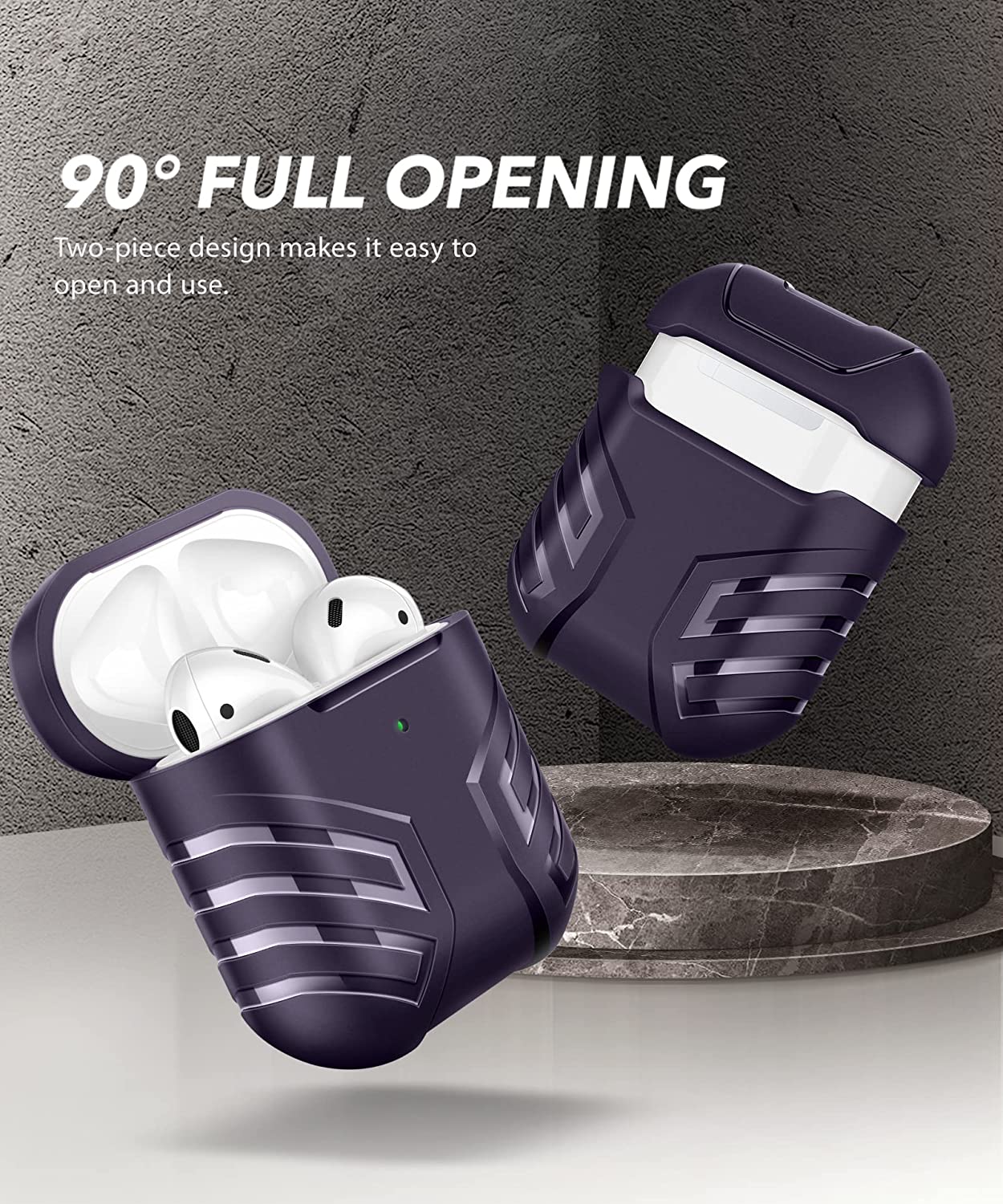 • [360° Full Protective] Full wrapped and anti-slip stripe designed makes the protective AirPods case anti-shock, anti-slip and anti-fingerprint. [Patent No: US D902854 S]