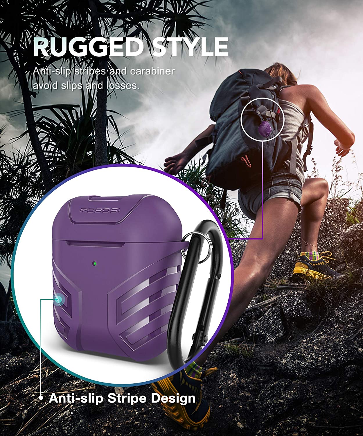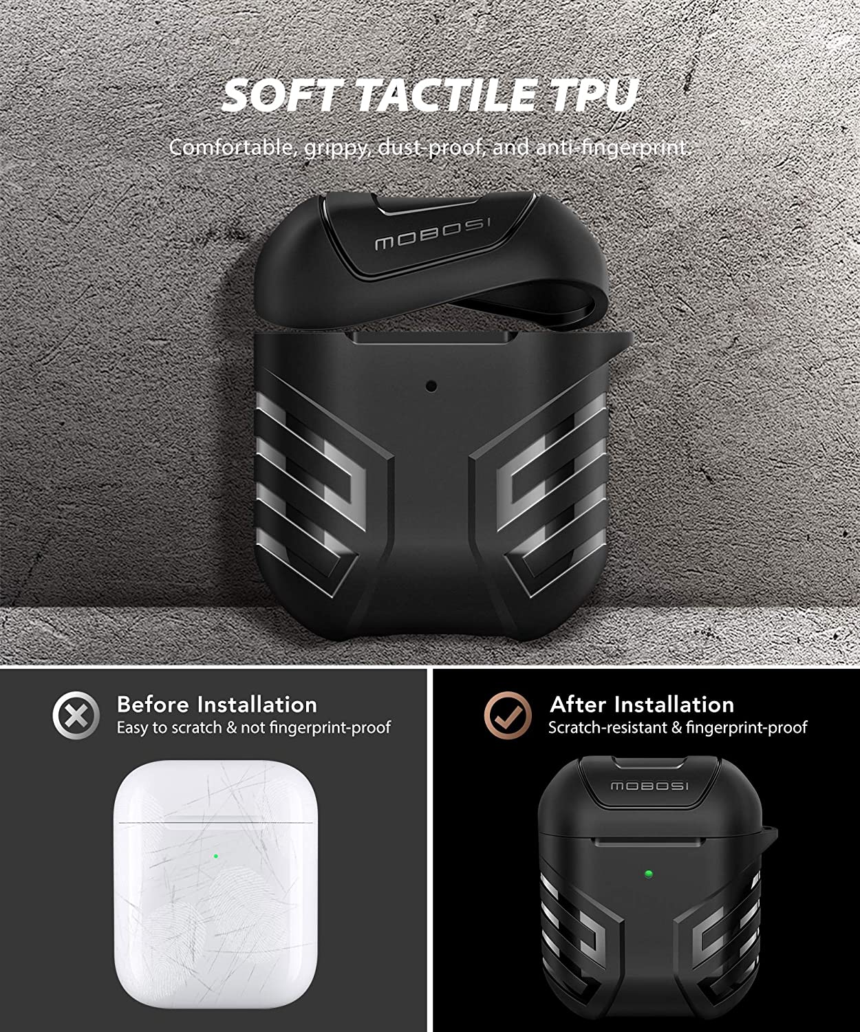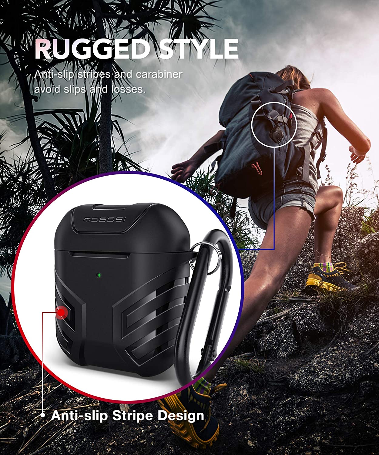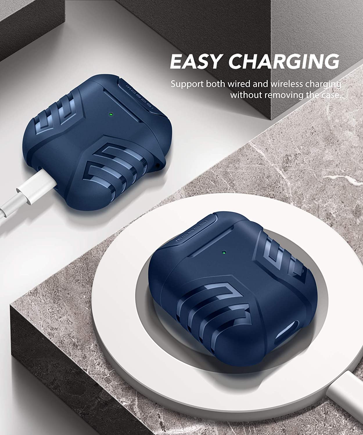 • [360° Full Protective] Full wrapped and anti-slip stripe designed makes the protective AirPods case anti-shock, anti-slip and anti-fingerprint. [Patent No: US D902854 S]