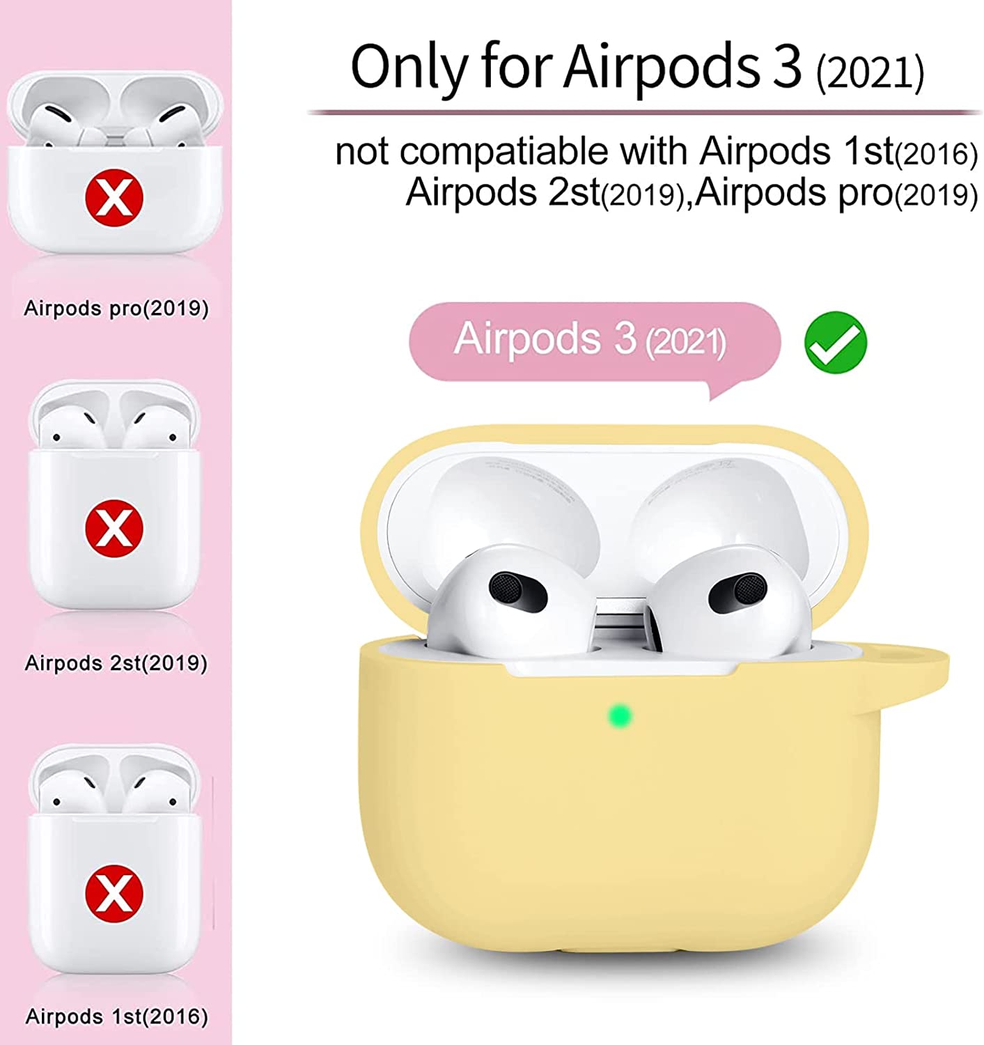 • Premium Material: Made of high quality elastomer silicone, prevents your skin from irritation; waterproof, sweatproof and scratchproof and keep your Airpods 3 case more security