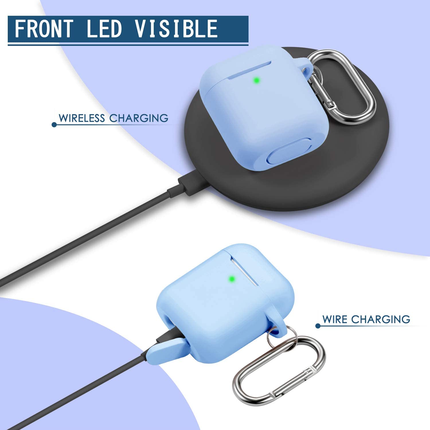 R-fun AirPods Case Cover , Soft Silicone Protective Cover with Keychain for Women Men Compatible with Apple AirPods 2nd 1st Generation Charging Case, Front LED Visible-Sky Blue