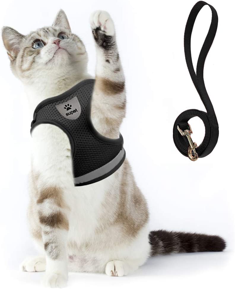 Supet Cat Harness and Leash Set for Walking Cat and Small Dog Harness Soft Mesh Harness Adjustable Cat Vest Harness with Reflective Strap Comfort Fit for Pet Kitten Puppy Rabbit