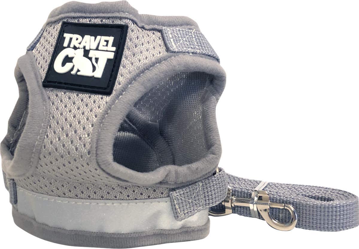 Travel Cat Harness and Leash Set - Adjustable Comfort Fit Mesh Vest Harnesses with Reflective Strap - Snug Fit Harness for Cats, Kitten for Outdoor Walking, Grey, Large (Chest 16-19 inch)