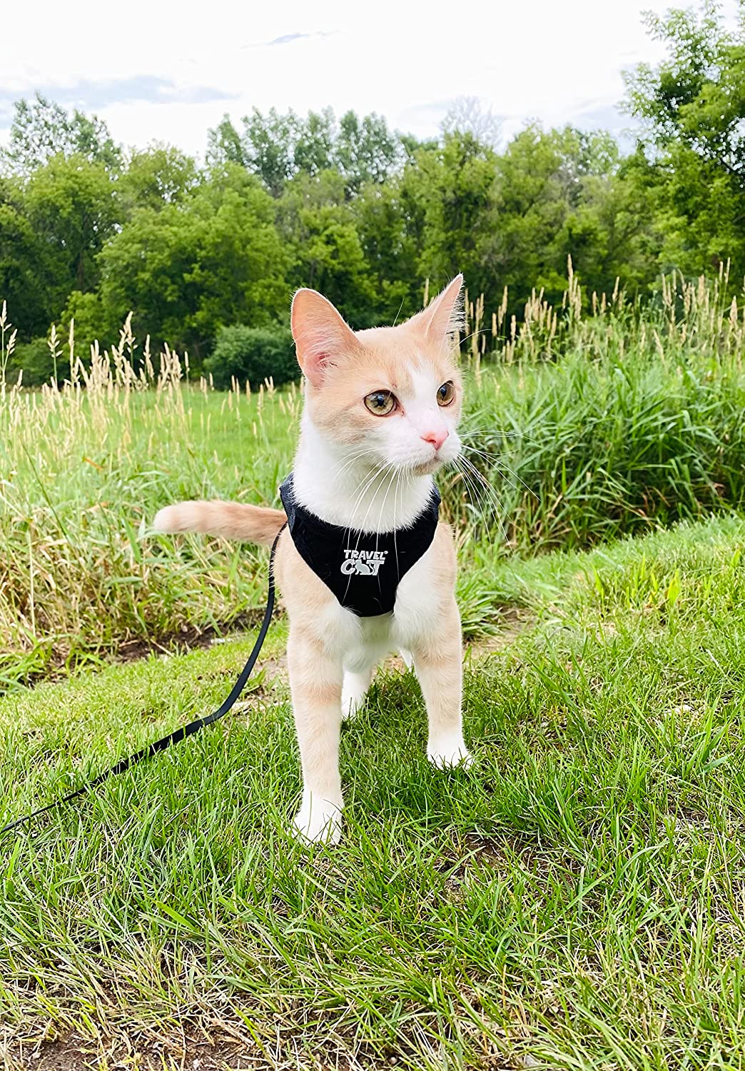 • MULTIPURPOSE CAT HARNESS & LEASH : Travel Cat harness vest and leash set will be useful when you will decide to take your cat out walking, training, hiking, exploring outdoors or to unfamiliar place, such as the vet clinic or groomer.