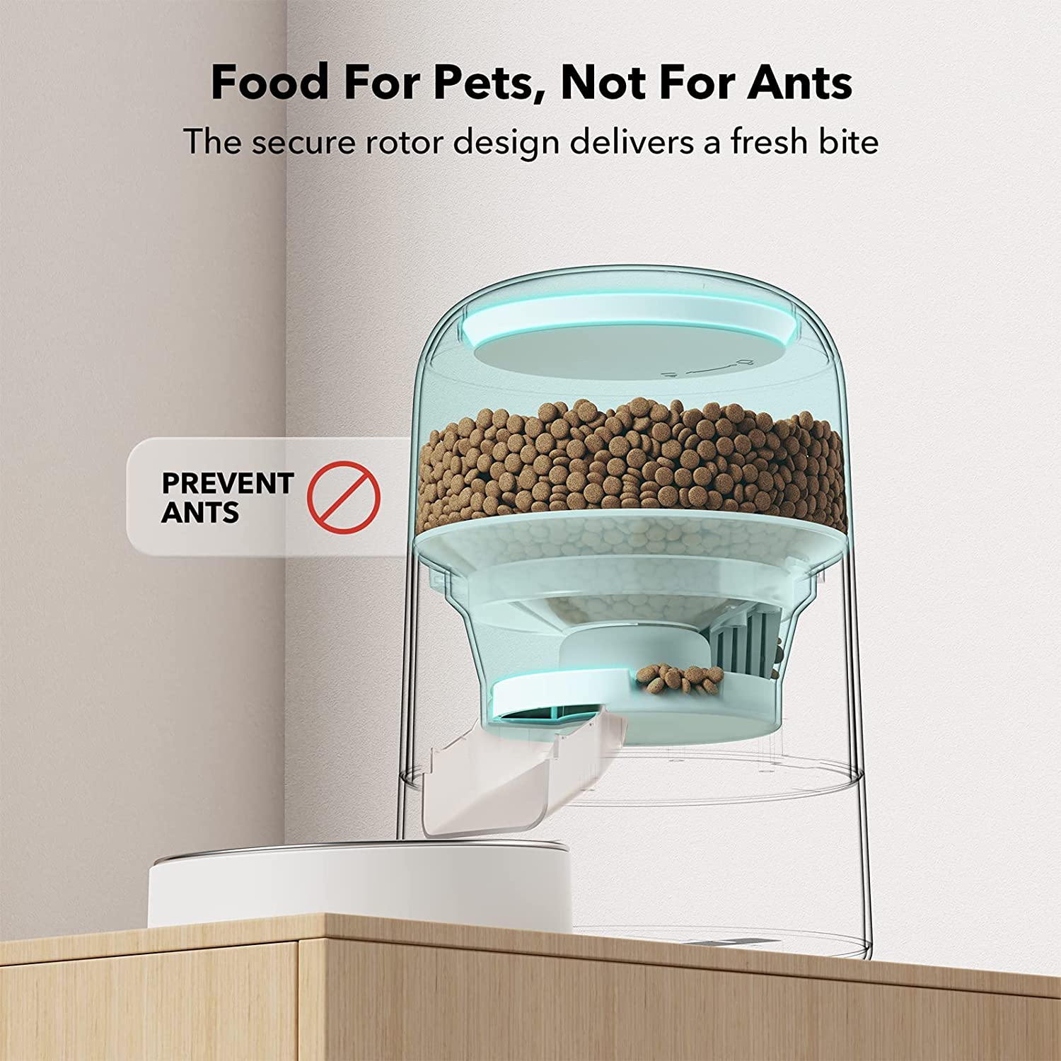 • Ants Out, Freshness In: Keep food fresh and free from ants with the PETLIBRO automatic pet feeder. The soft rubber rotor and rubber strip keep air, water, and ants from entering the tank.