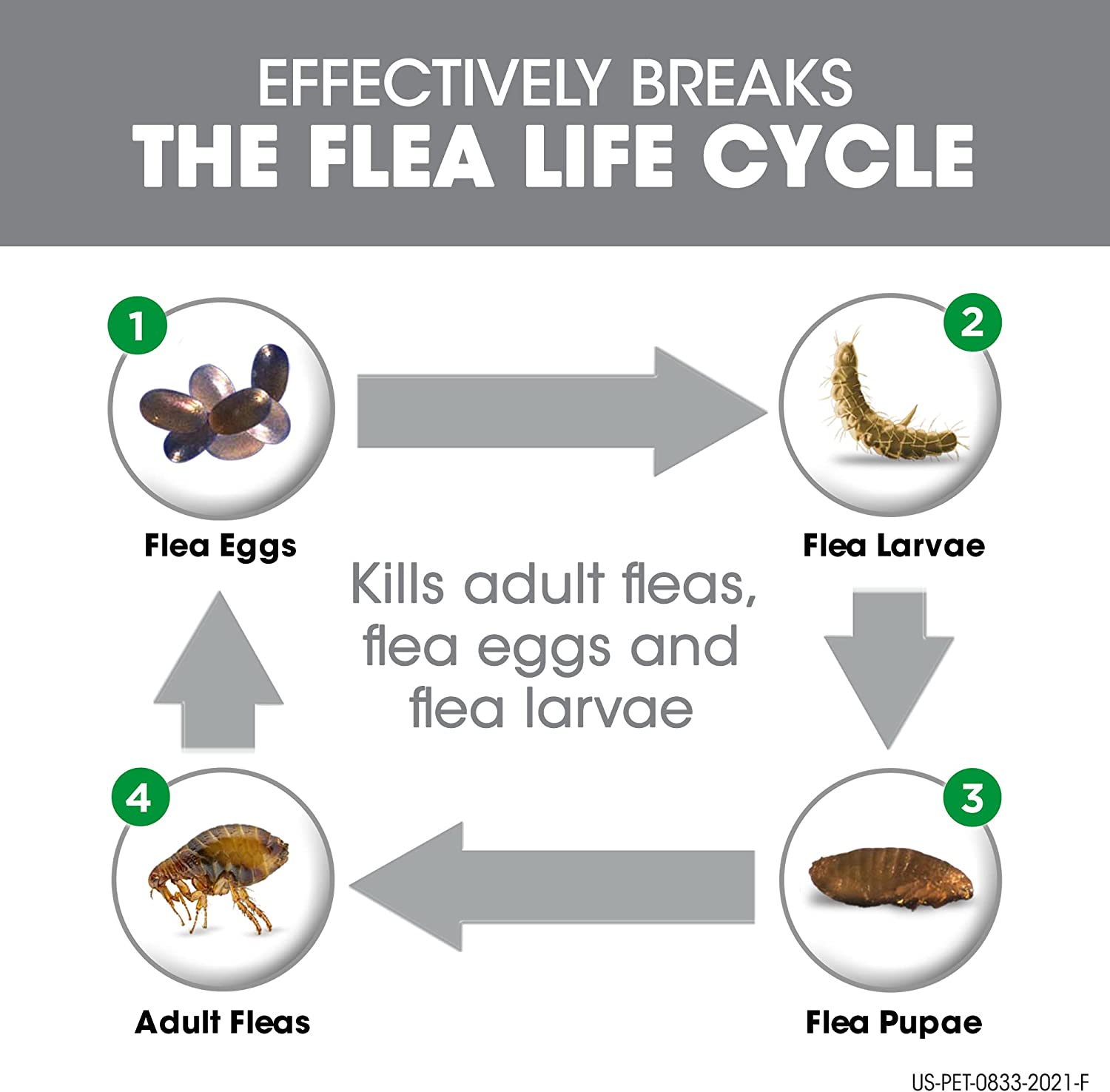 • Kills adult fleas, ticks, chewing lice, mites, and flea eggs and larvae
