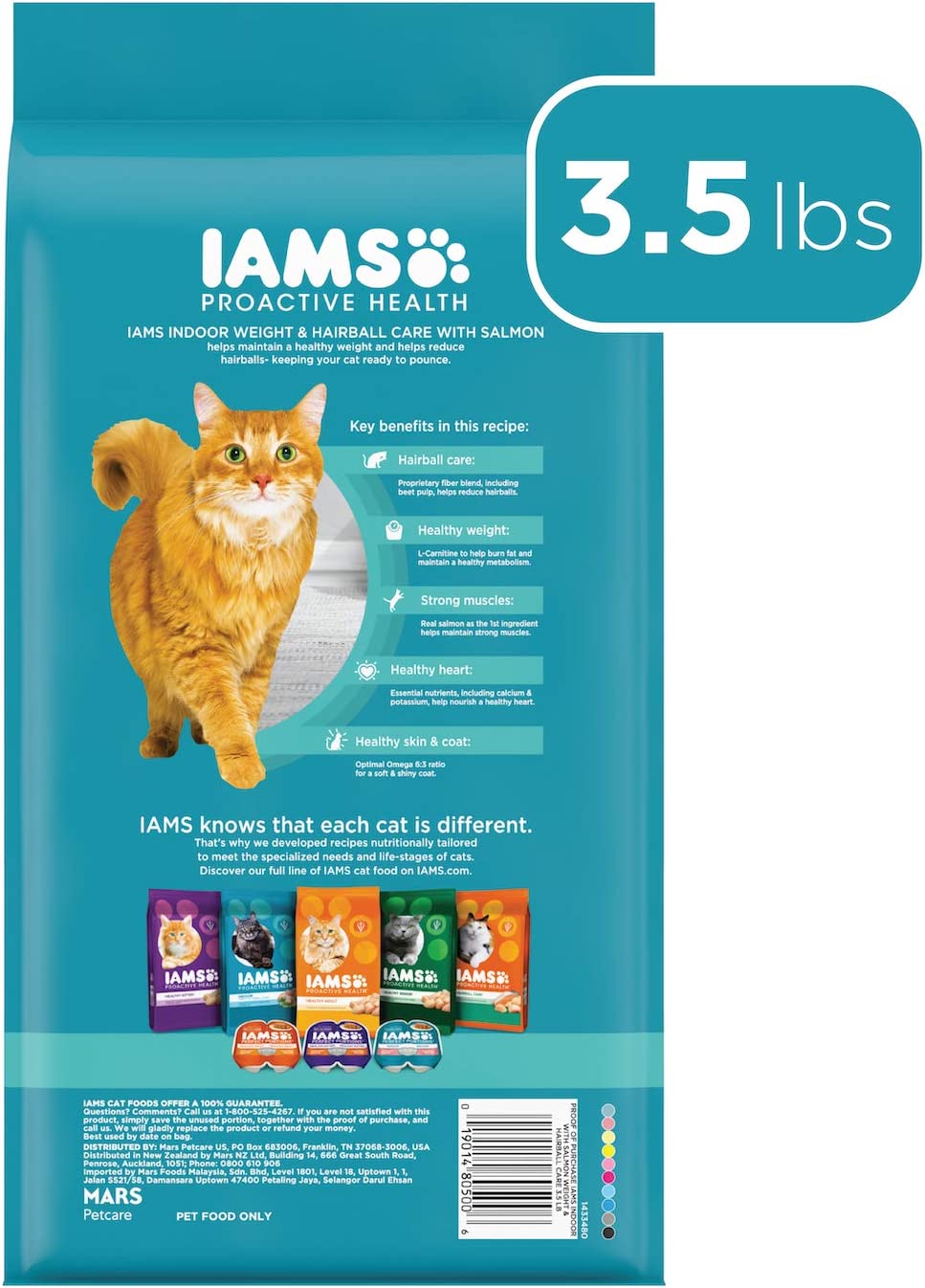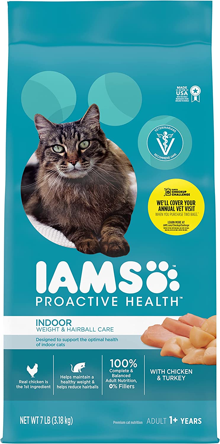 IAMS PROACTIVE HEALTH Adult Indoor Weight Control & Hairball Care Dry Cat Food with Chicken & Turkey Cat Kibble, 7 lb. Bag