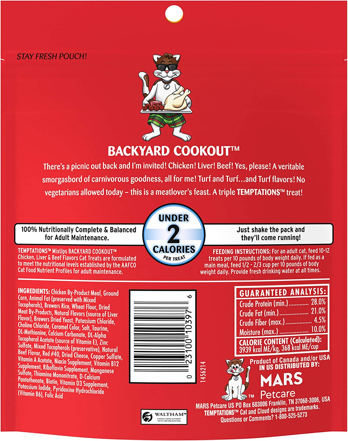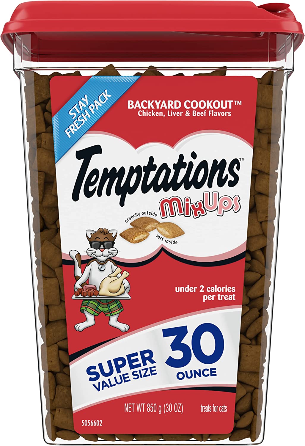 TEMPTATIONS MIXUPS Crunchy and Soft Cat Treats Backyard Cookout Flavor, 30 oz. Tub