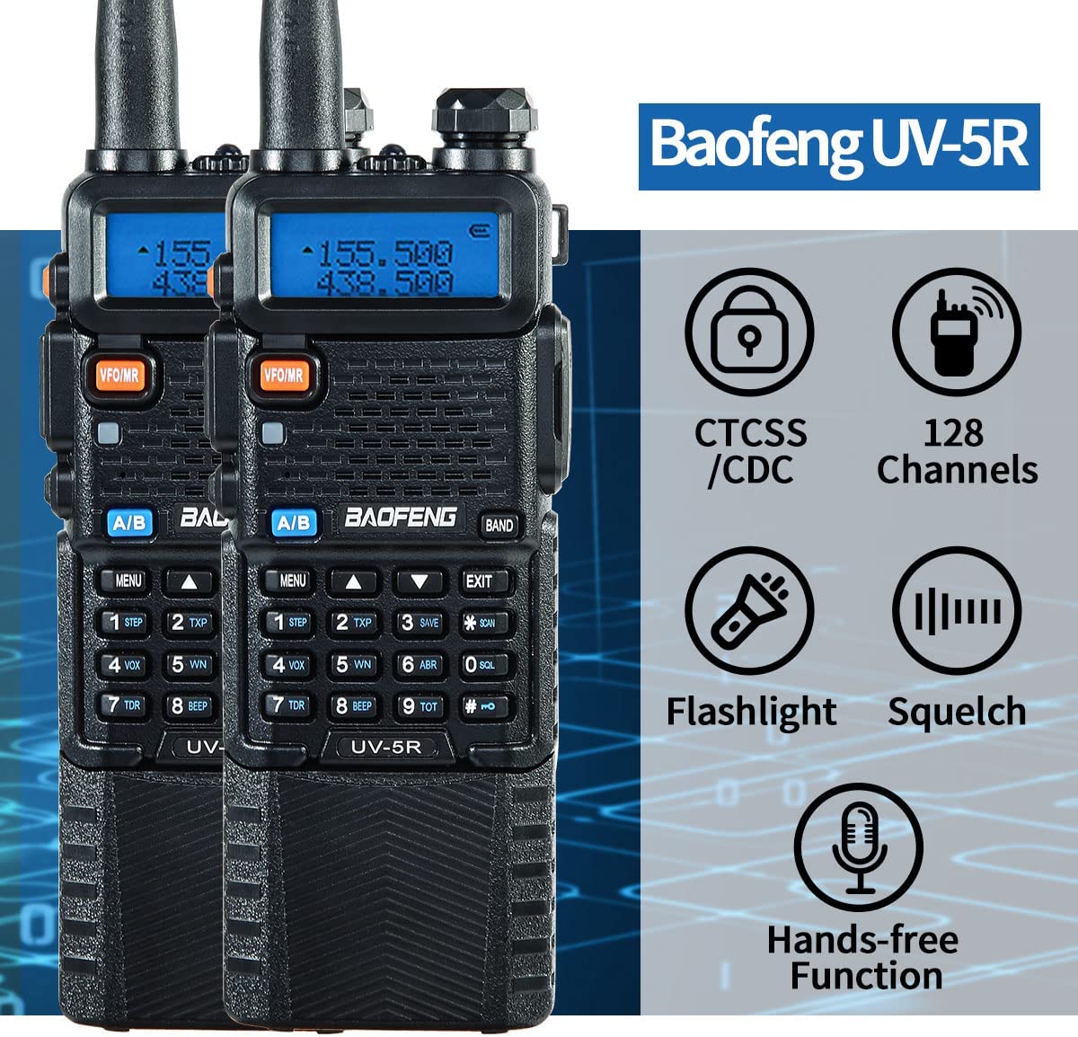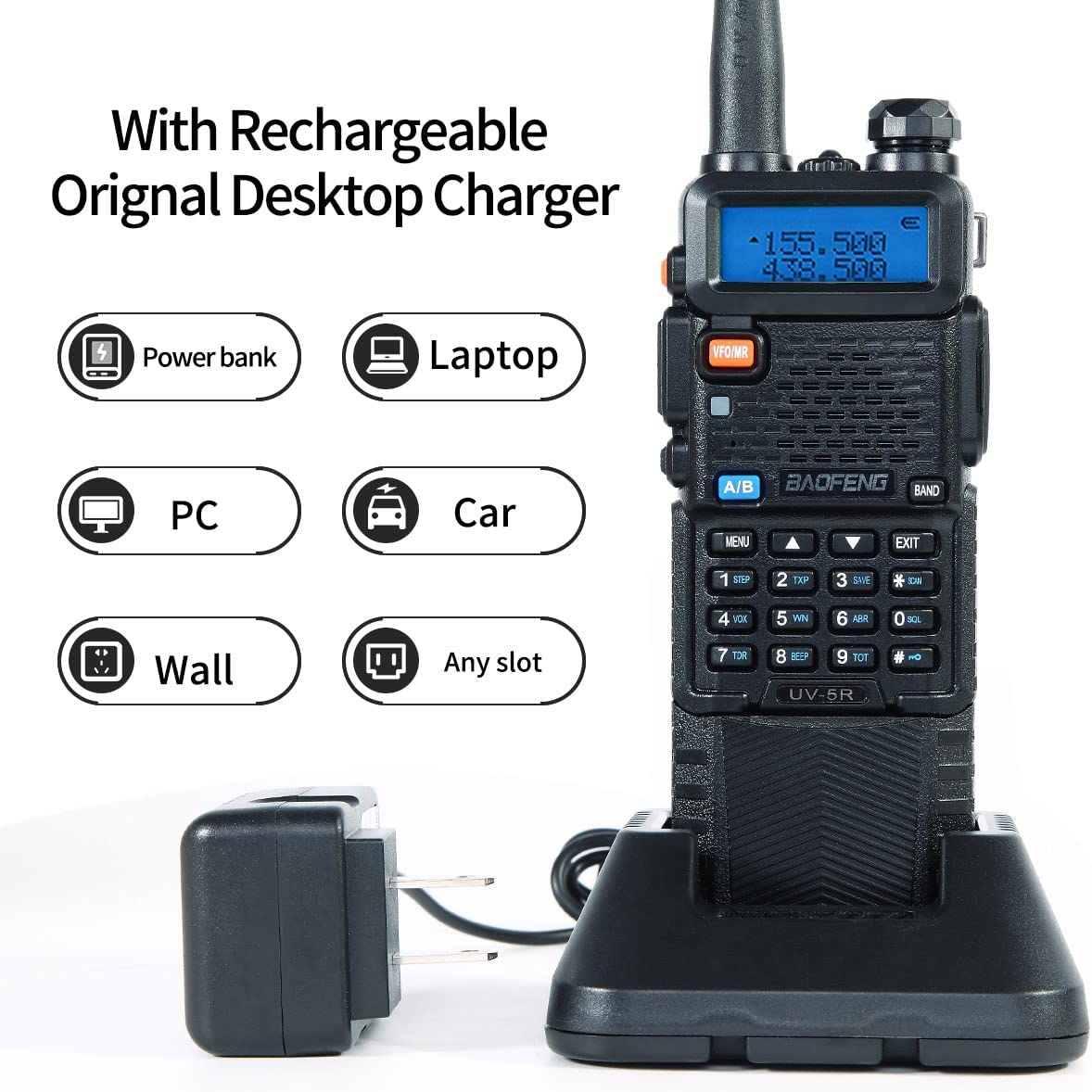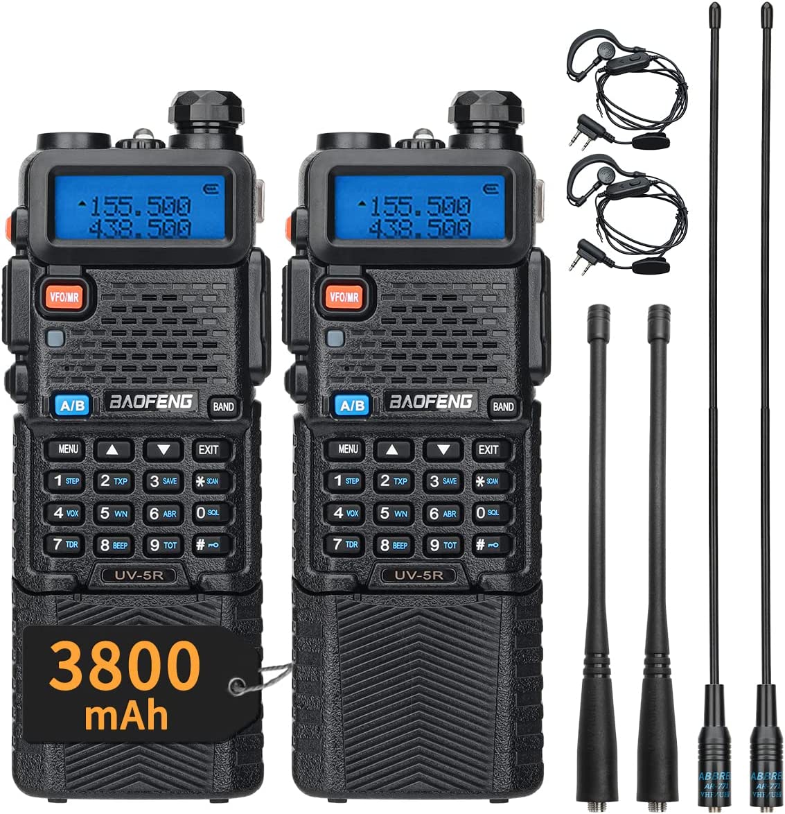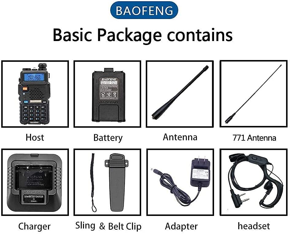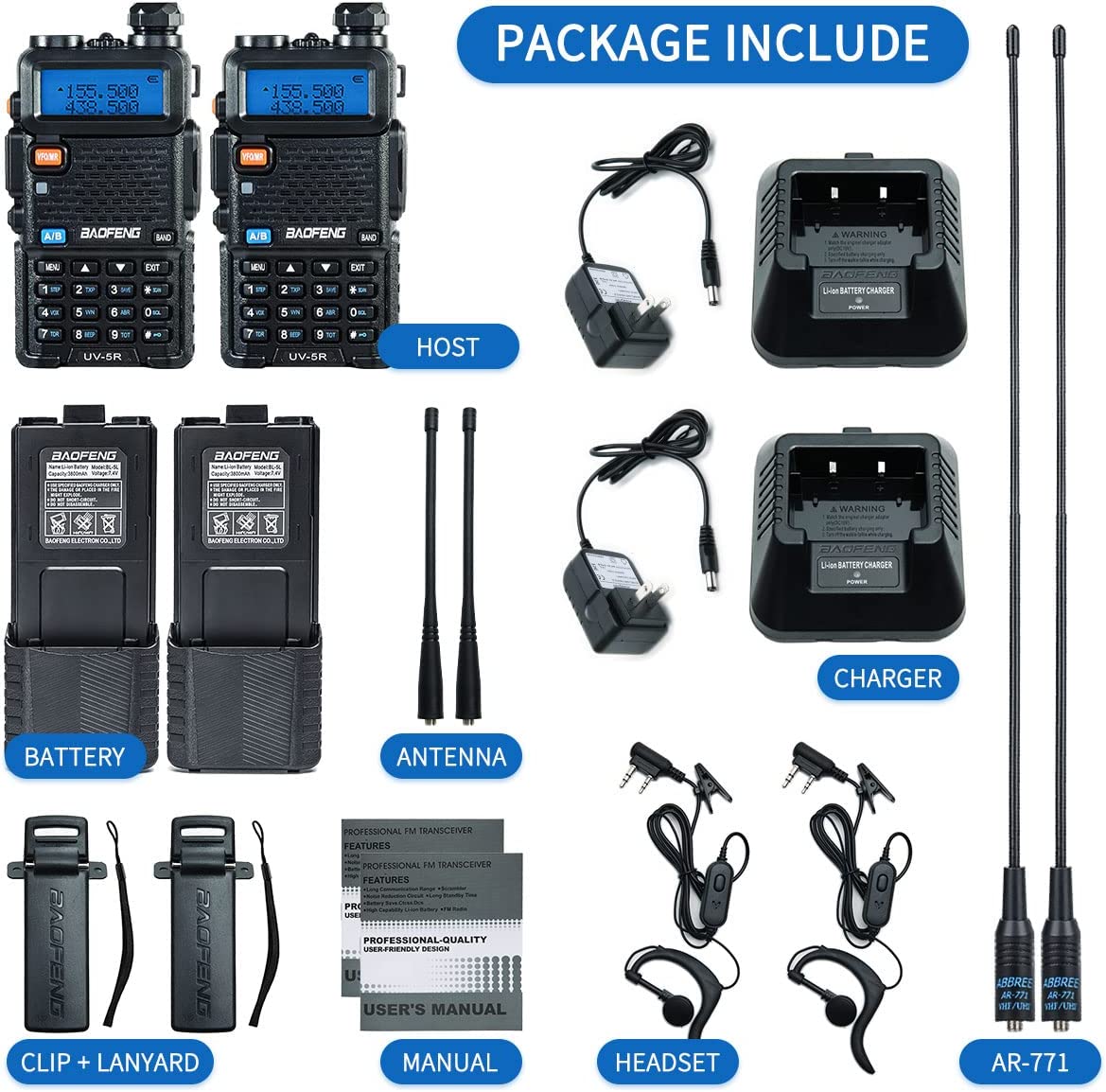 2 Pack Baofeng UV-5R Two Way Radio Ham Radio Handheld Rechargeable Long Range Portable Baofeng Walkie Talkie with 2 Pack 771 Antenna (Black)