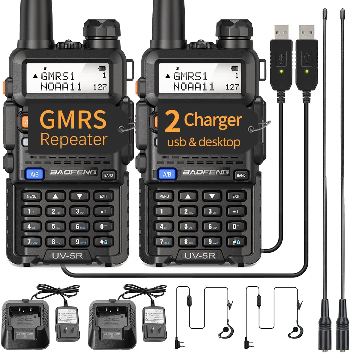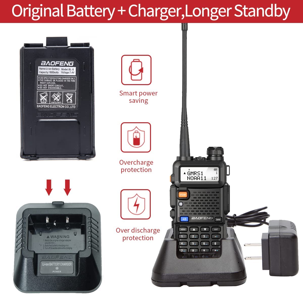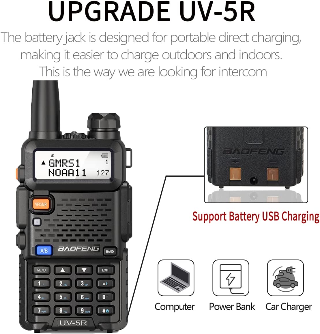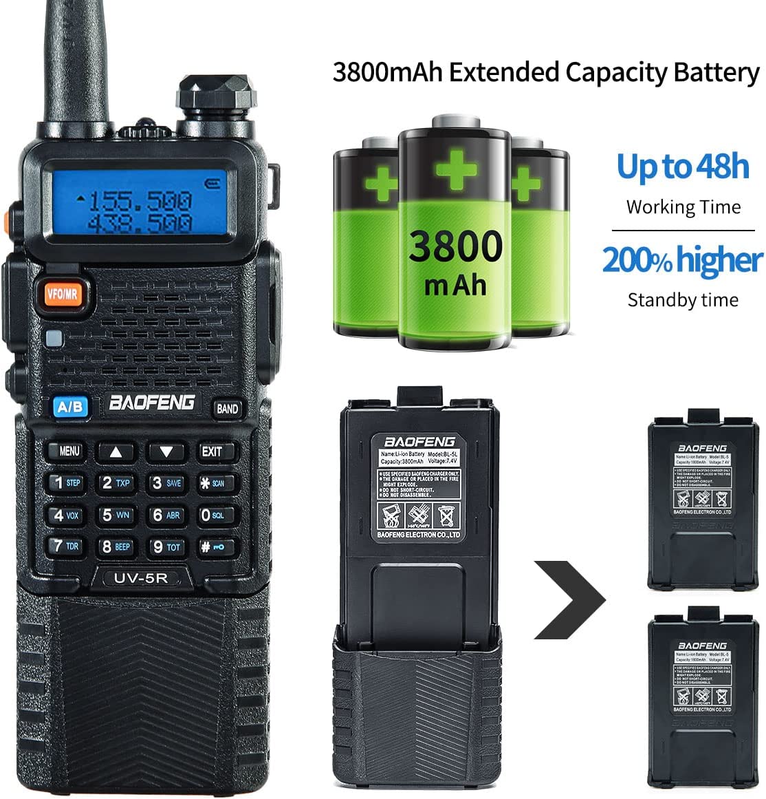 2 Pack Baofeng UV-5R Two Way Radio Ham Radio Handheld Rechargeable Long Range Portable Baofeng Walkie Talkie with 2 Pack 771 Antenna (Black)
