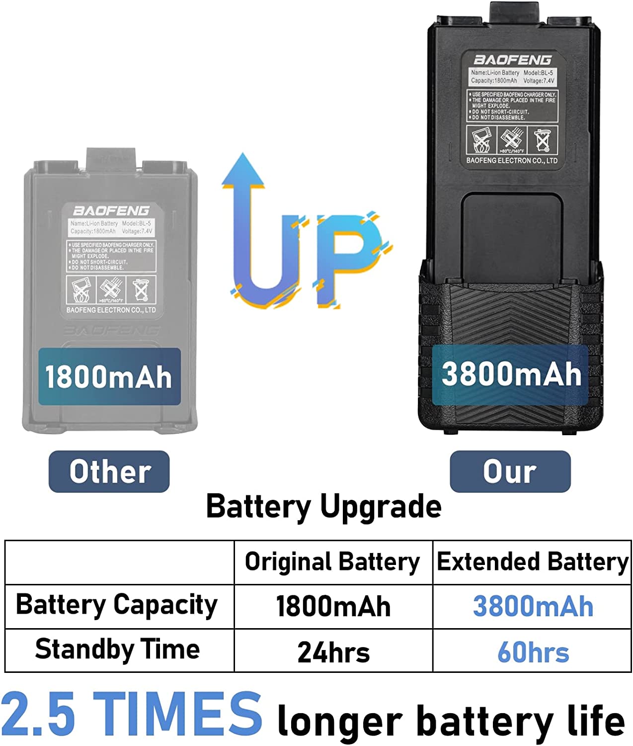 • ✔️[Double Batteries]: Extra battery for your radio, One for use One for backup. Each battery have up to 36 hours standby time. Another battery provide you Non-Stop communication experience, no need to worry about suddenly running out of power on the road.