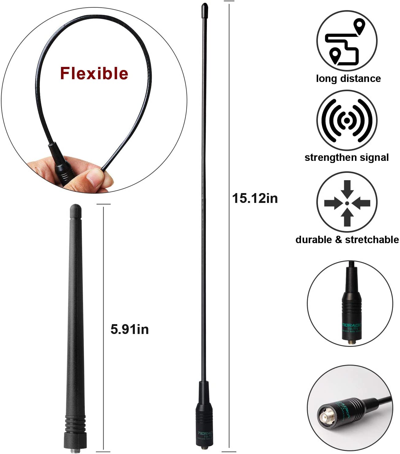 • ✔️[High Gain Long Antenna]: This bundle comes with an extra antenna. Adding a TD-771 high gain antenna on your ham radio can greatly expands the signal transmission distance and enhances signal reception. This also helps you to hit the repeater further away to reach a longer communication distance.