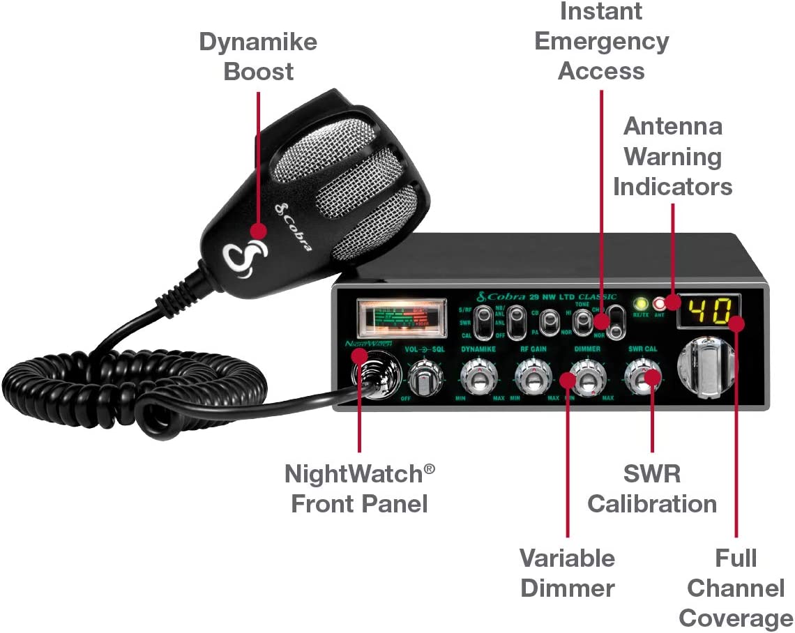 From natural disasters and national emergencies to unprecedented times, Cobra is the most trusted brand in communication and power solutions. We believe reliability and quality aren’t optional. It’s our standard. Citizens Band Radio (also known as CB radio) is, in many countries, a system of short-distance radio communications allowing people to speak over long distances. " The 25 LTD Classic is rugged professional full featured CB radio with professional-driver requested improvements. Perhaps the best of these improvements is the front panel microphone connector which makes in-dash installation a cinch. Cobra has also provided a nine foot microphone cord so that you keep in touch about anywhere in the cab. Other features include: Instant Channel 9, PA capability, dimmer control, switchable noise blanker and RF gain.