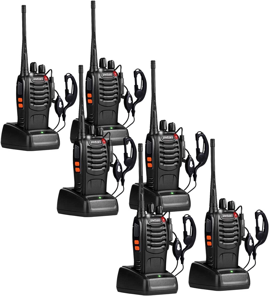 pxton Two Way Radios Long Range Walkie Talkies for Adults with Headphones,16 Channel Handheld 2 Way Radio Rechargeable with Flashlight Li-ion Battery and Charger(6 Pack)
