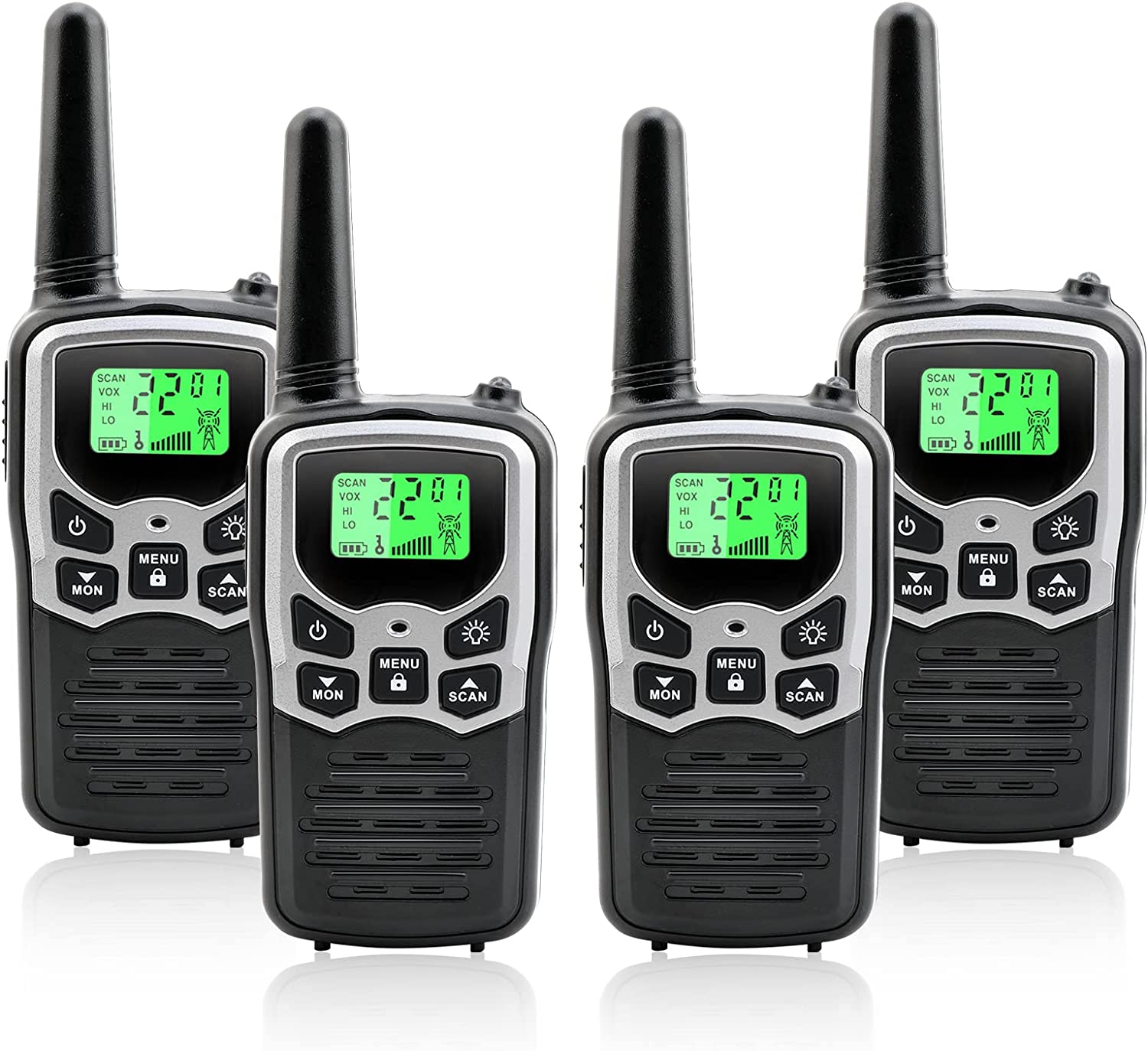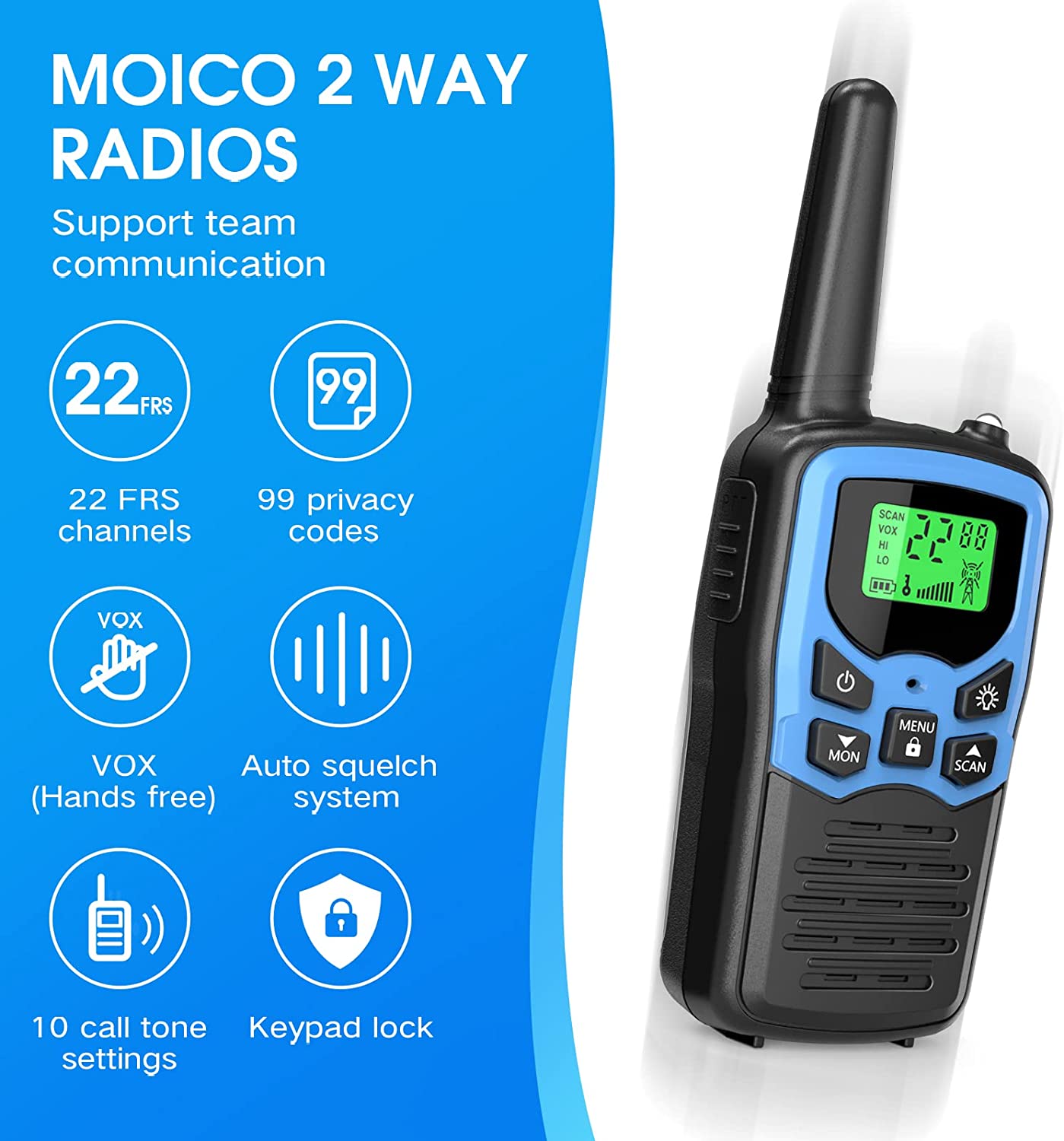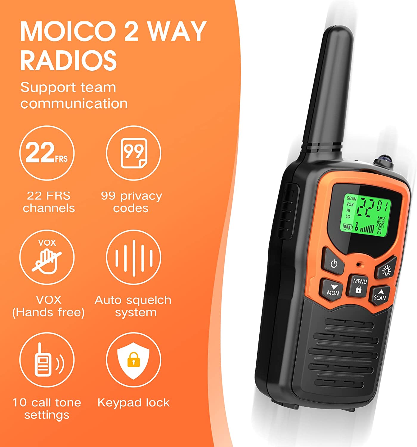 Walkie Talkies with 22 FRS Channels, MOICO Walkie Talkies for Adults with LED Flashlight VOX Scan LCD Display, Long Range Family Walkie Talkie for Hiking Camping Trip (Yellow, 4 Pack)