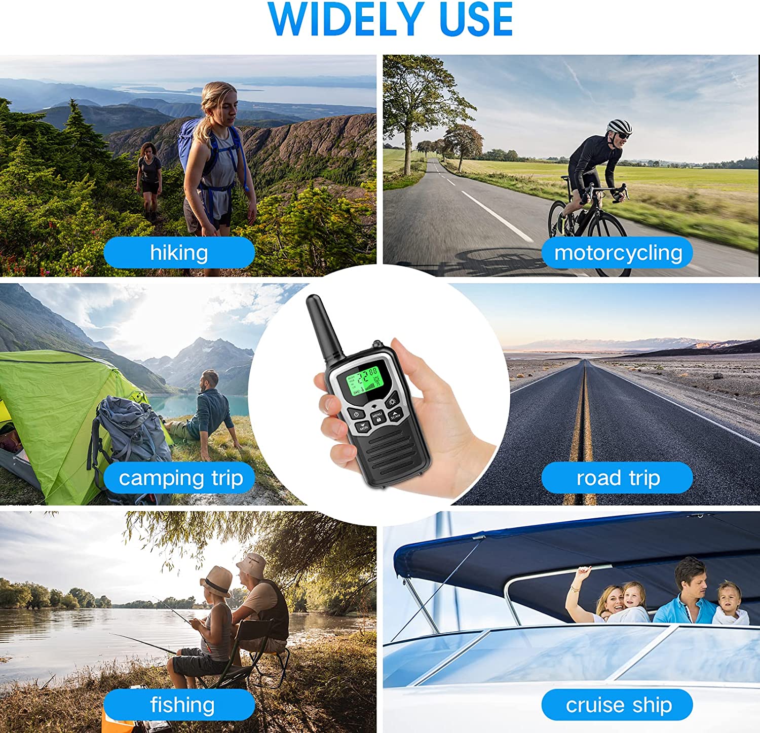 • 【 Long Rang Walkie Talkies】Walkie talkies can reach 3 miles communication range in open areas such as rural areas, suburbs or seaside, etc. where there is no shelter. If in cities or towns, walkie talkies can reach 0.6-1.2 miles. The actual distance depends on the obstruction of the current environment.