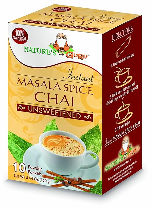 Nature's Guru Instant Masala Spice Chai Tea Drink Mix Unsweetened 10 Count Single Serve On-the-Go Drink Packets, 5.64 Ounce (Pack of 1) (MCU_FBA)