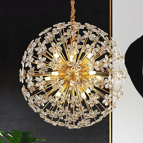 31" Modern Gold Crystal Sputnik Chandelier for Dining Living Room Glam Luxury Petal Orb Globe Chandelier 12-Light for Foyer Hallway Elegant Pendant Ceiling Light Fixtures for Kitchen Bedroom
