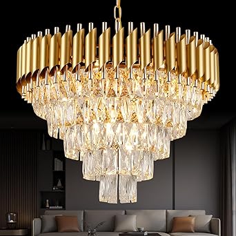 5-Tiers Modern Gold K9 Crystal Chandelier 11 Lights 24'' Contemporary Crystal Pendant Chandeliers Light Fixture for Living Room Dining Room Bedroom Entryway Foyer High Ceiling