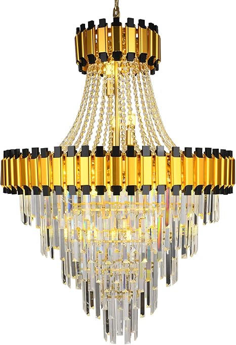 Luxury Crystal Chandelier, 21 Round K9 Crystal Chandelier, 5-Story Gold Chandelier, Suitable for Modern Chandeliers in Restaurants, Living Rooms, Kitchen Islands, and bedrooms, D32.5