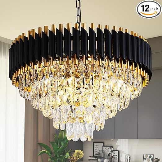 Modern Chandelier Gold and Black Crystal Chandeliers 5-Tier Chandelier Crystal Round Hanging Crystal Pendant Light Fixture for Dining Room Bedroom Living Room Foyer Farmhouse W24 12 Lights