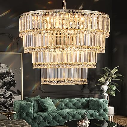 Modern Crystal Chandelier 24" Gold Luxury Crystals Chandelier 4-Tier Large Crystal Pendant Ceiling Light Fixture 12-Light Crystal Pendant Light for Dinning Room Living Room Foyer