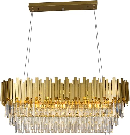 Modern Crystal Chandelier Gold L40 Rectangle Pendant Light Fixture for Dinning Room 10 Lights Luxury Crystal Chandeliers Light for Cafe, Living Room (L40''-10 Lights)