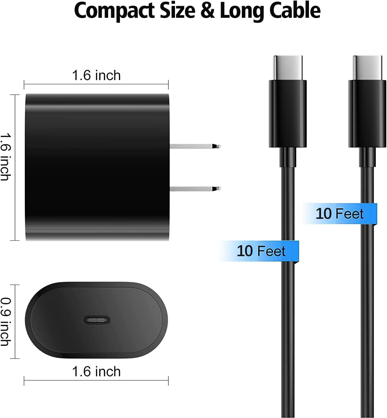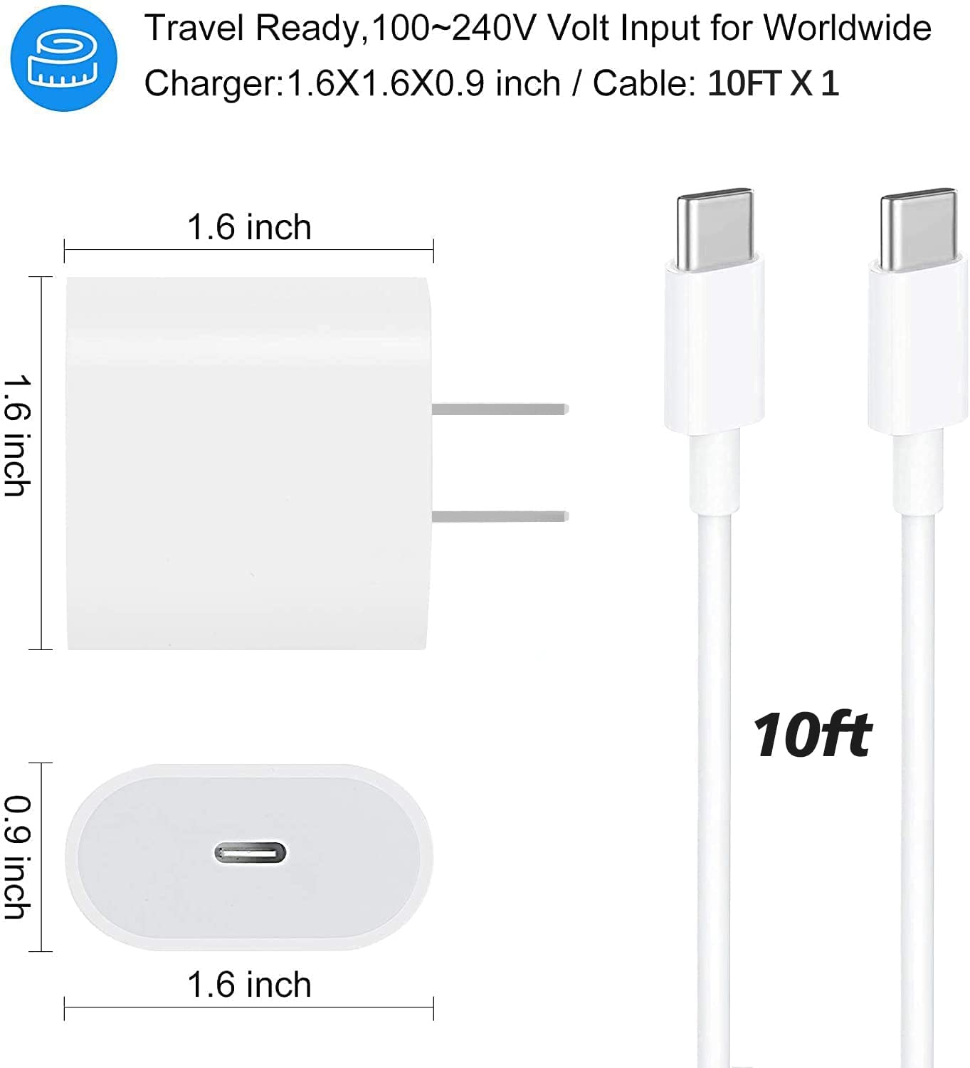 • What in The Box: 1 * 20W USB C Charger Block, 1 * 10ft extra long usb c to usb c cord,180 days WARRANTY. if you have any questions,we will resolve your issue within 12 hours.