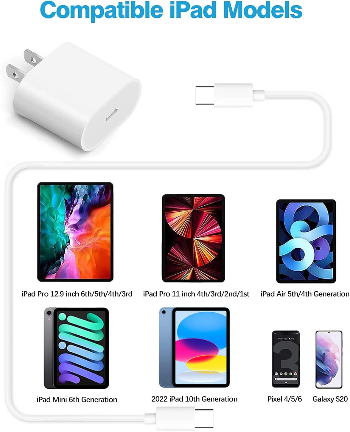 iPad Pro Charger [Apple Mfi Certified] 20W USB C Charger with 10ft USB C to C Charging Cable for iPad Pro 12.9, iPad Pro 11 inch 2022/2021/2020/2018, iPad Air 5th/4th Generation, iPad 10, iPad Mini 6