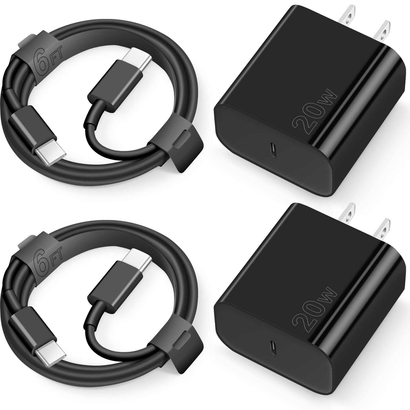 iPhone 15 Charger USB C Wall Charger iPad Pro Charger Block 2 Pack with 2 Pack 6FT Cable for iPhone 15/15 Plus/15 Pro/15 Pro Max/iPad Pro/Mini/Air/Air4/AirPods/Samsung(Black)