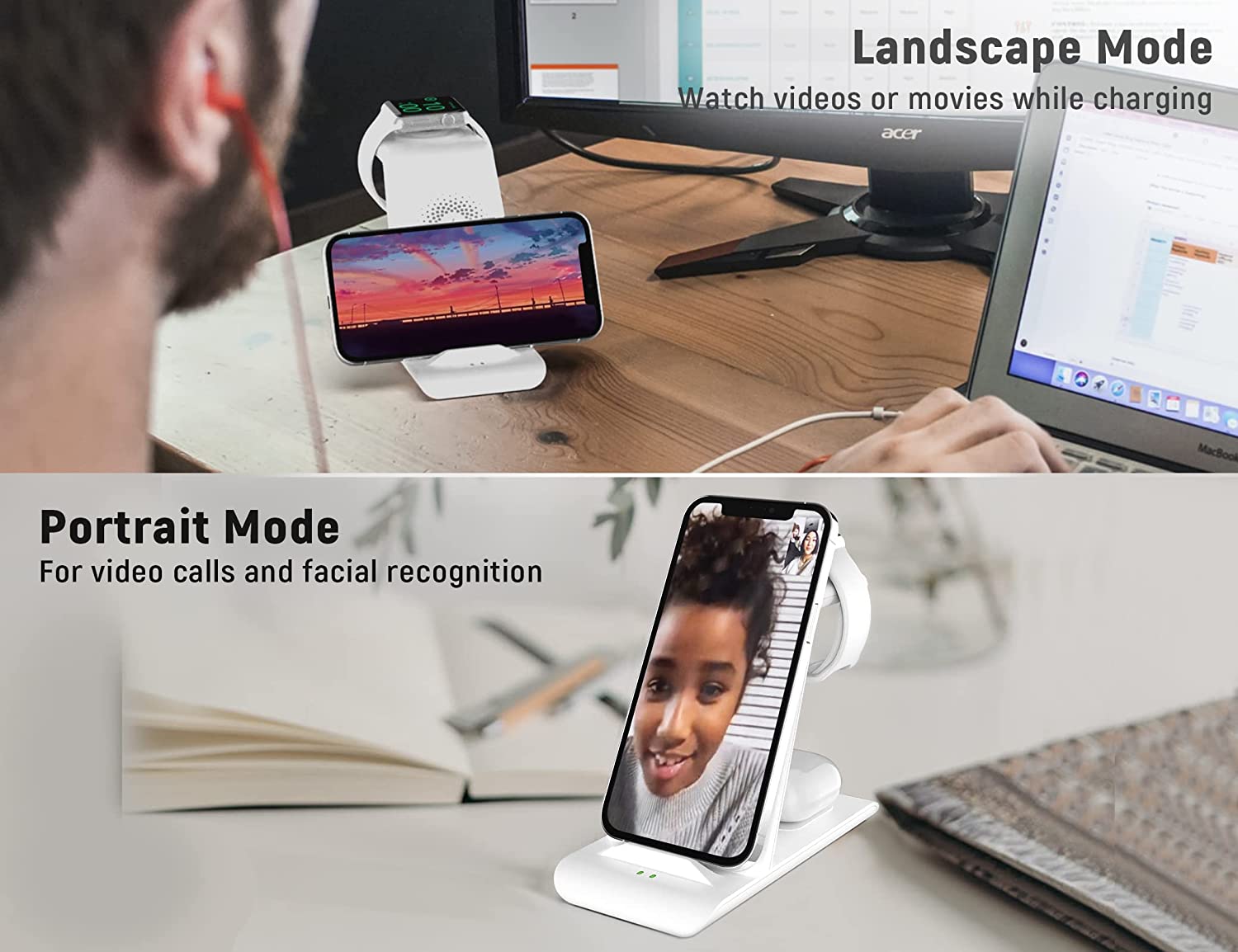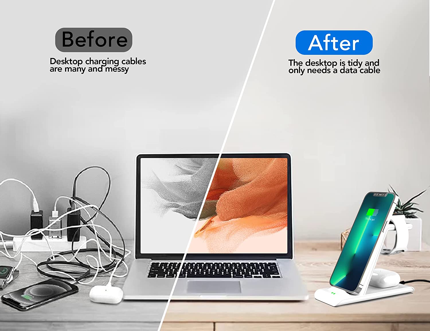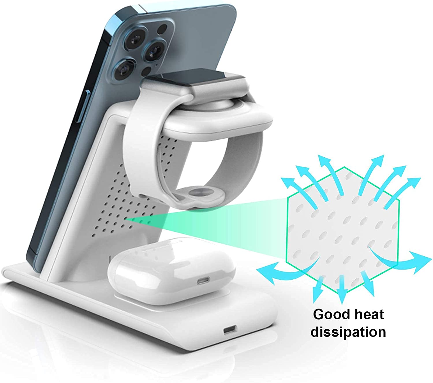 • 【Package & 1 year warranty】1* 3 in 1 Apple charging station wireless charger+1*QC3.0 adapter +1*USB charging cable. We are free to replace it or make a refund for you if there is any quality problem of the Apple wireless charging stand when using, please contact us feel free,we always here to solve problem for our customer,thanks.(update: this charger charge AirPods 3rd generation 2021 and iphone 13 series)