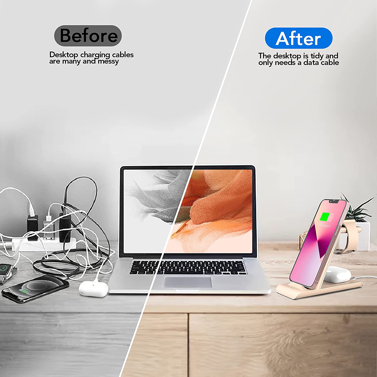 • 【Professional Design】:This 3 in 1 wireless charger focus on practical,convenient,elegant and durability,in the past 2 years,our designers designed this high-quality,high-convenient apple watch charger wireless charging station follow rigorous design concept,continuous improvement and thousands of tests.In the future,we still will constantly update products according customer using experience and market changes,and do our best to serve customers.