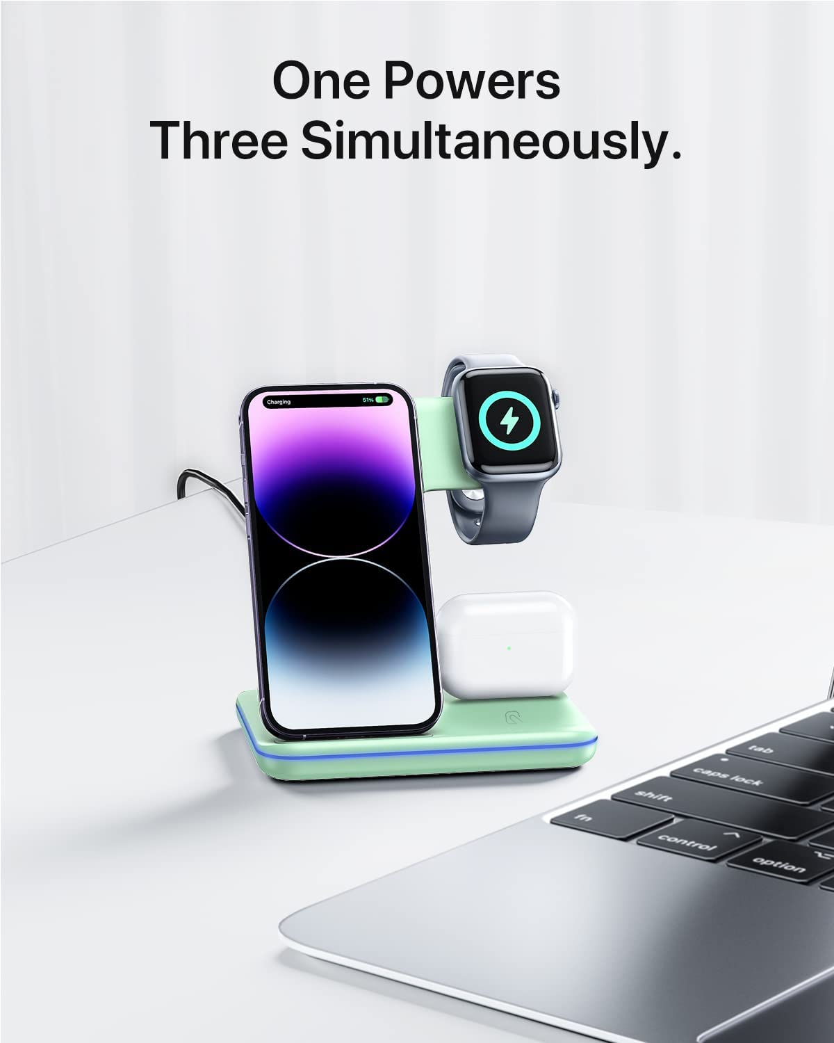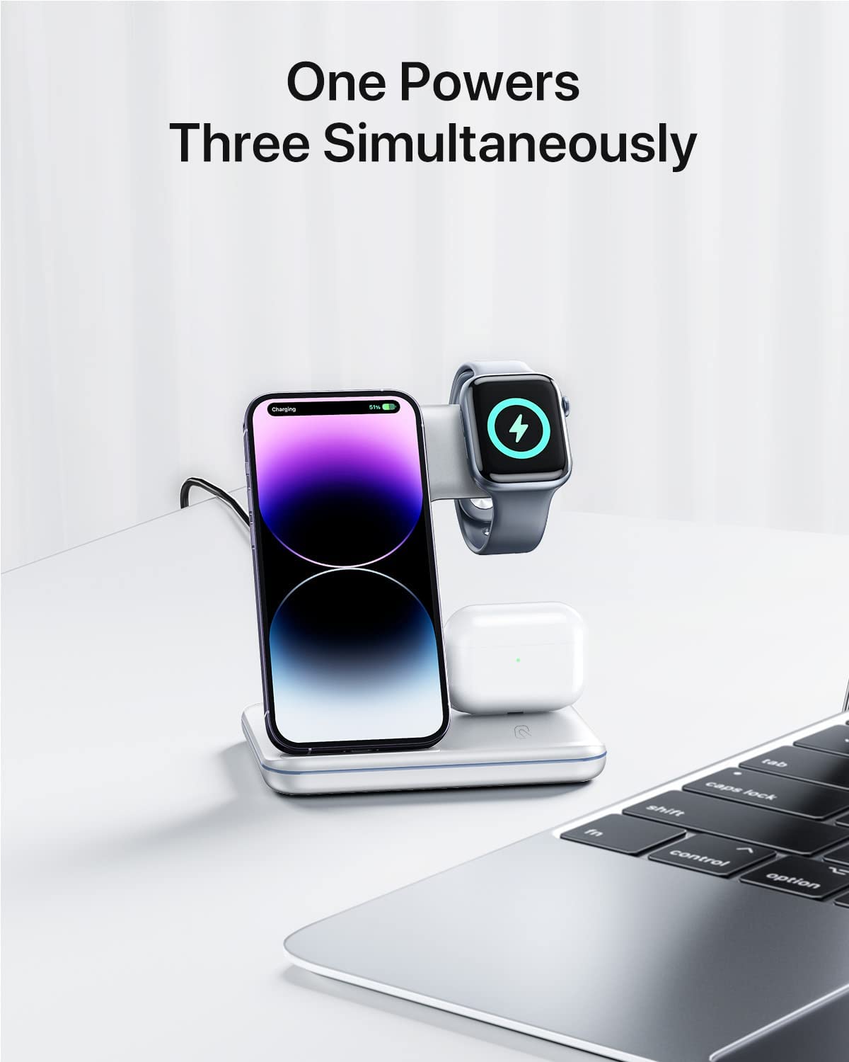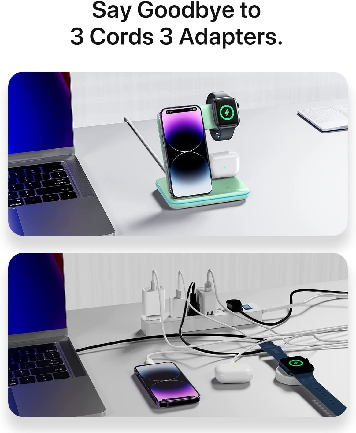 • 【Latest upgrade】Upgraded design and internal chip ensure safe and fast wireless charging. One charging device for iPhone, iWatch, and Airpods/Pro. Suitable for home and office usage.