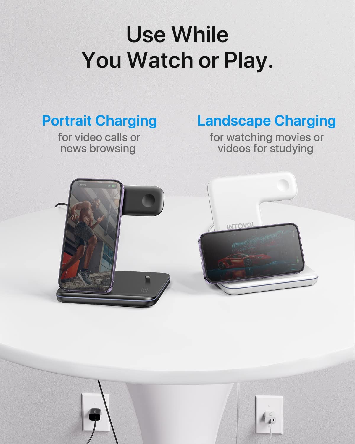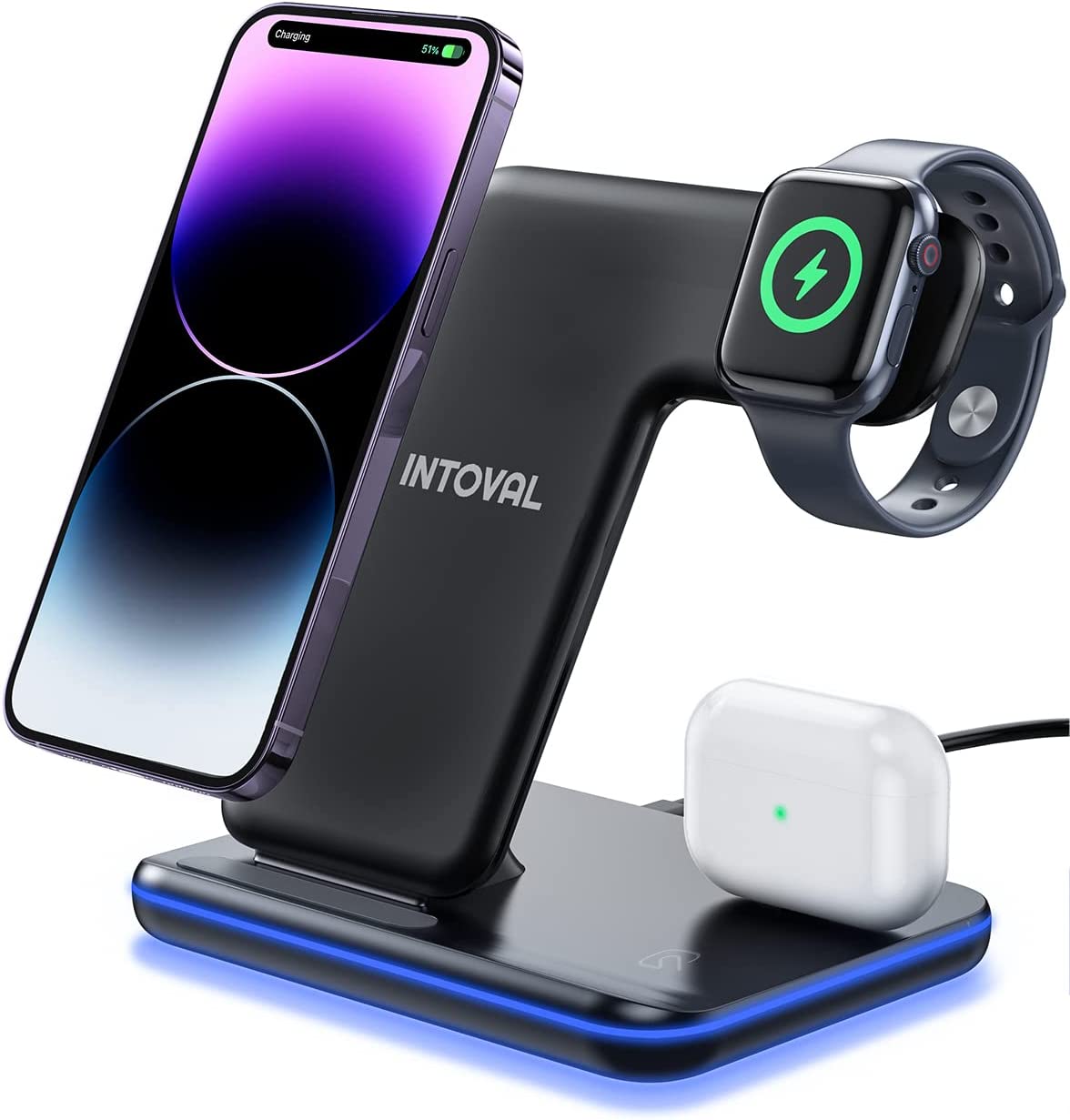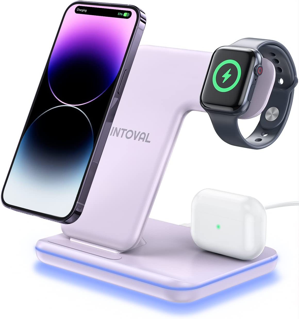 Intoval Wireless Charger, 3 in 1 Charger for iPhone/iWatch/Airpods, Qi-Certified Charging Station for iPhone 14/13/12/11/Pro/Max/XS/Max/XR/XS/X, iWatch 7/6/SE/5/4/3/2, Airpods Pro/3/2/1 (Z5,White)