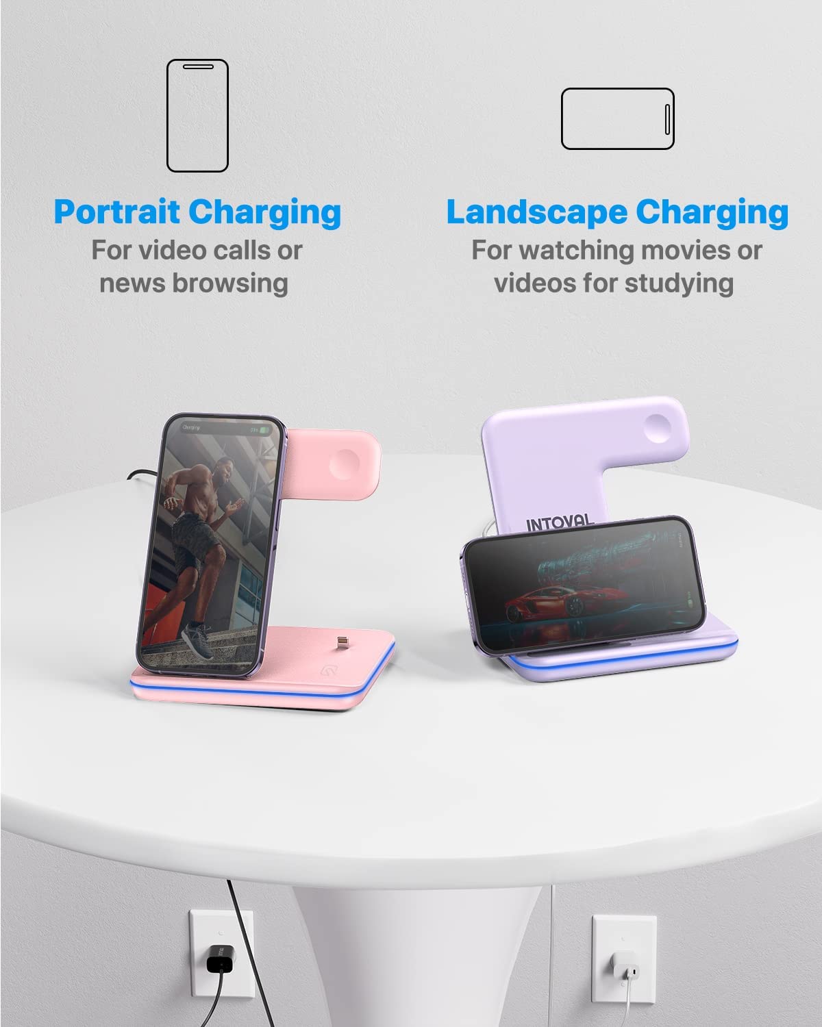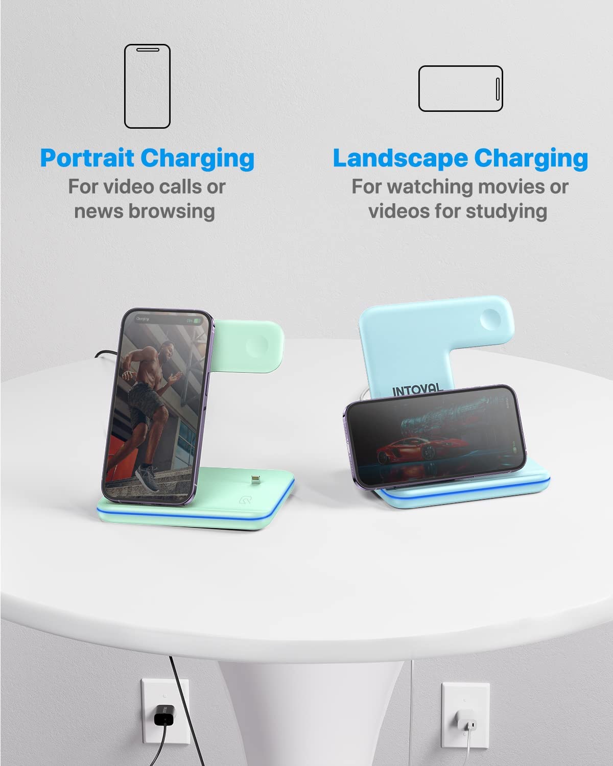 • 【Fast Charging】 Support up to 10W fast wireless charging(7.5W for iPhones, 10W for Galaxy phones). Intelligent charging current control protects your device battery under fast charging. Place horizontally to enjoy videos while charging, or vertically for video conferencing or facial recognition.