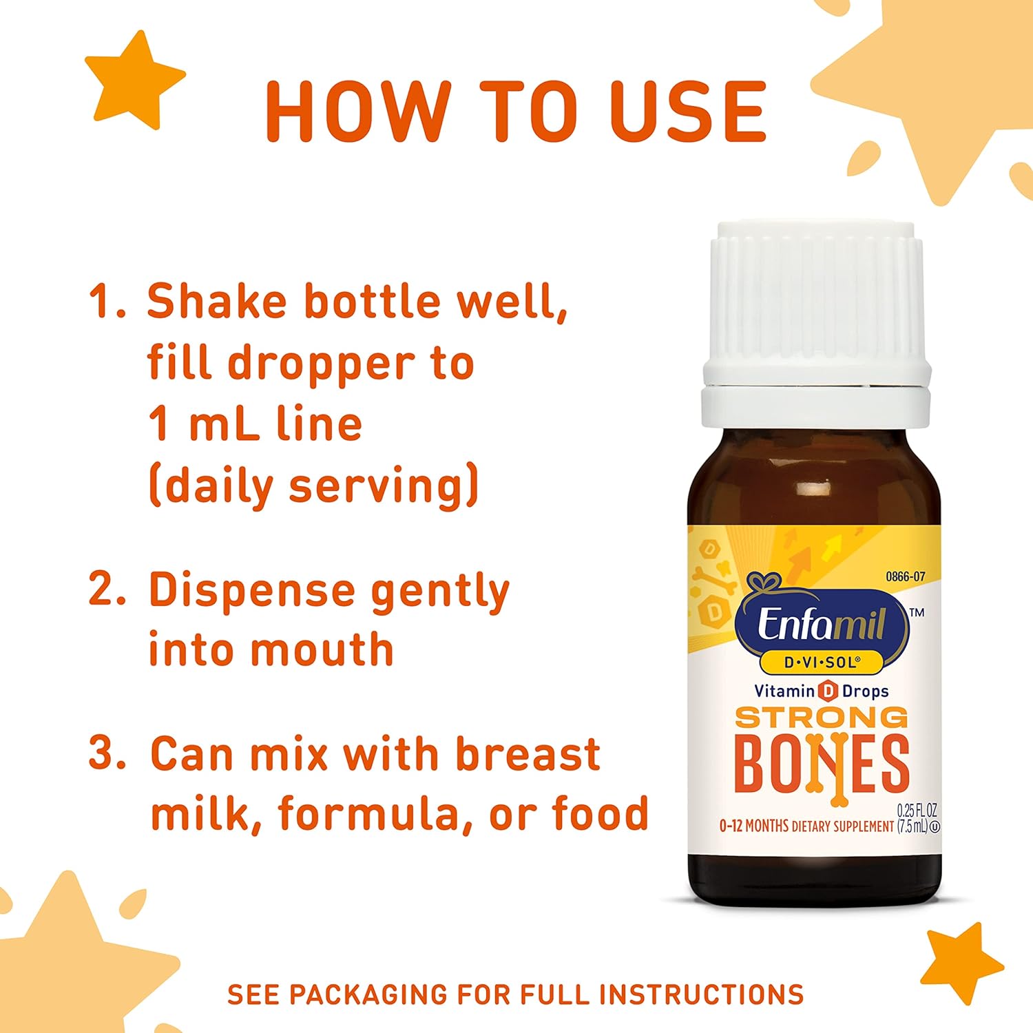 When transitioning your baby to solid foods, Enfamil Poly-Vi-Sol (available with or without iron) helps make sure your little one is still getting the vitamins they need to support healthy growth, like vitamins A, C, D, E, and some B vitamins. Enfamil vitamins can be easily given by dispensing directly into the mouth or mixed with breast milk, formula, juice, cereal or other foods to increase acceptance. All Enfamil Pediatric Vitamins are gluten-free and have no artificial colors or artificial flavors. This statement has not been evaluated by the Food and Drug Administration. This product is not intended to diagnose, treat, cure or prevent any disease.