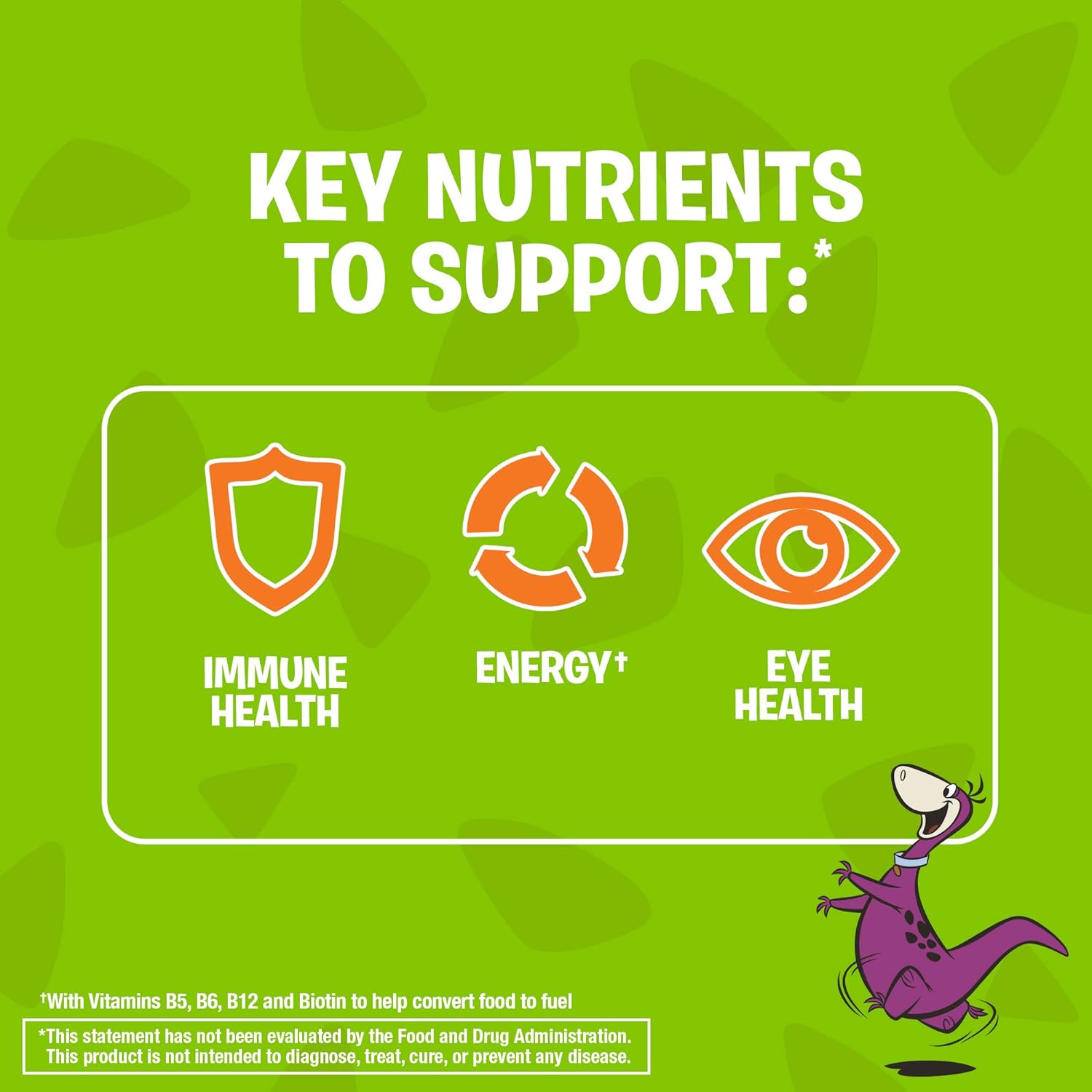 Trusted by parents and pediatricians alike, Flintstones multivitamins have been providing kids nutritional support as they grow up healthy and strong for more than 50 years. Flintstones Multivitamin Gummies with Immunity Support offer a wide range of nutrients in easy-to-chew, fruit-flavored gummies that kids love. These daily multivitamins provide vitamins and minerals that growing bodies may need. Flintstones Immunity Gummies are specially formulated with Vitamins A, E, Zinc and Vitamin C to support kids' immune health. Also contains B Vitamins to help convert food to fuel and supports eye health with key nutrients. This statement has not been evaluated by the Food and Drug Administration. This product is not intended to diagnose, treat, cure, or prevent any disease. The Supplement Facts labeling information contained within this website should be regarded as the most up to date and may differ from product labeling that you have purchased. Please consult your product package for information, including allergens, specific to the product you have purchased.